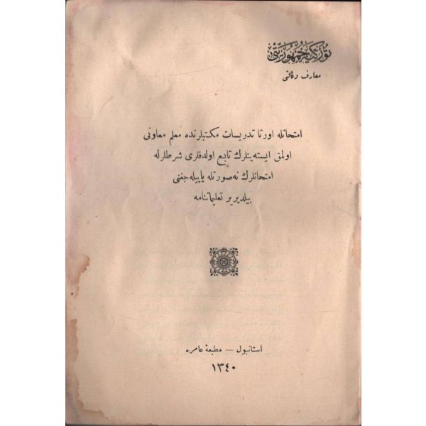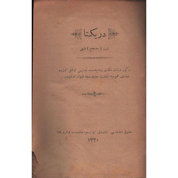 Osmanlı armalı ve ay yıldızlı, deri sırtlı cildinde... / Yırtık olan bir sayfası restorasyon esnasında fotokopi ile tamamlanmıştır. Başka bir sayfası da kenarından yırtıktır.