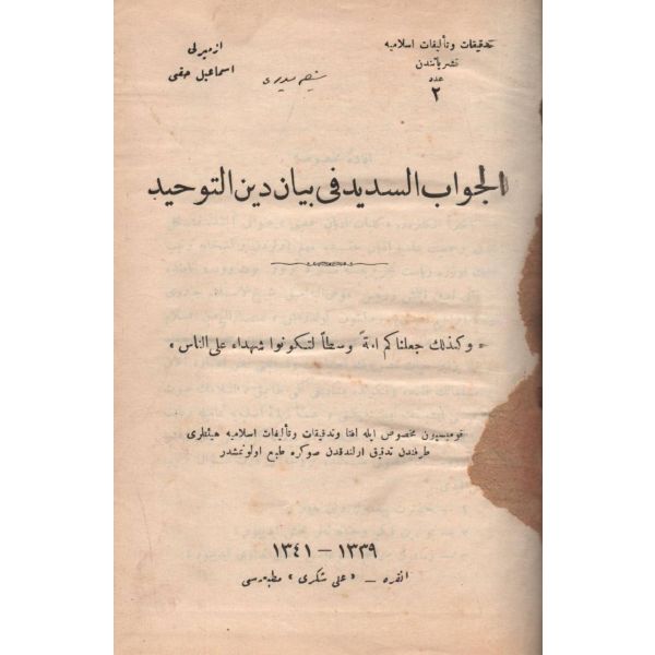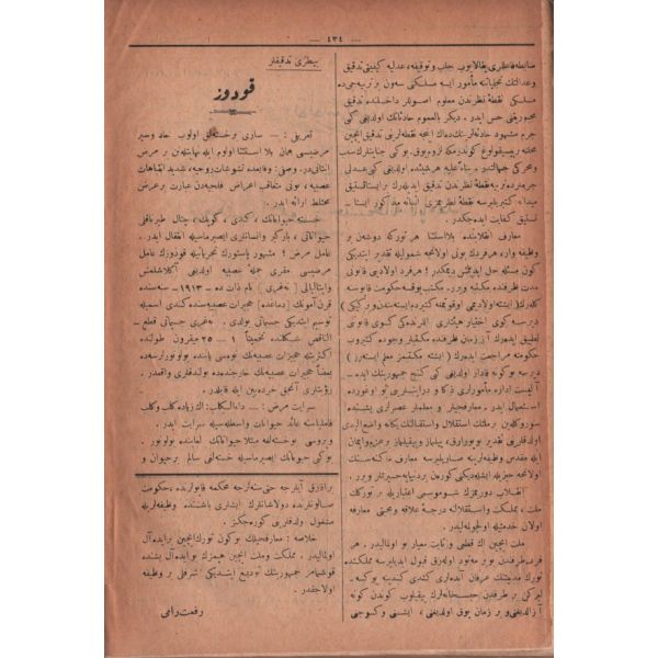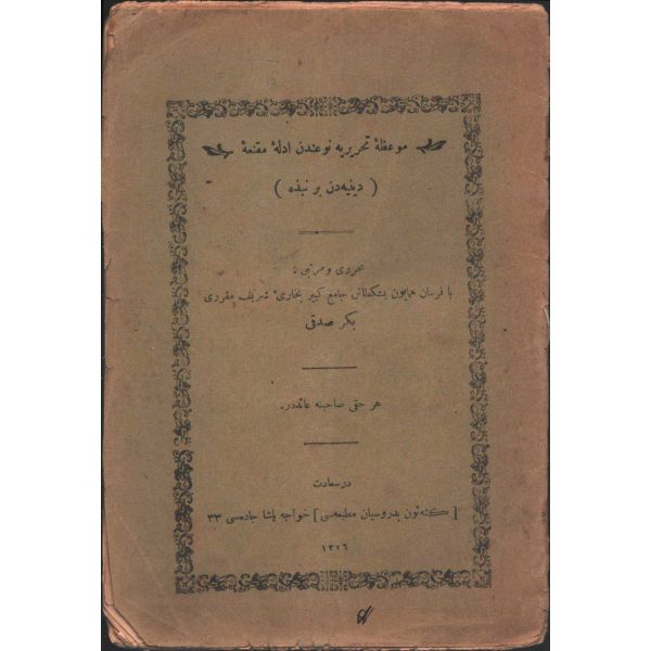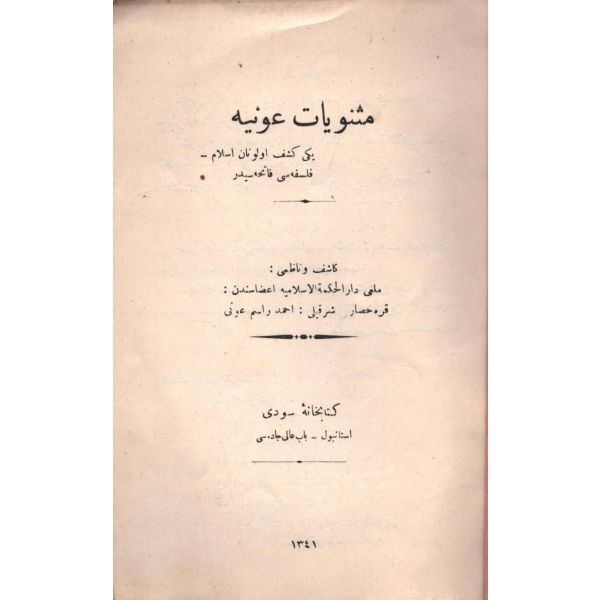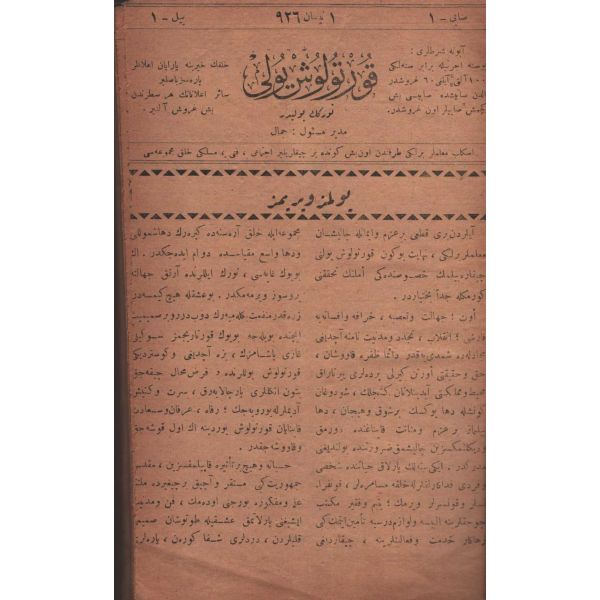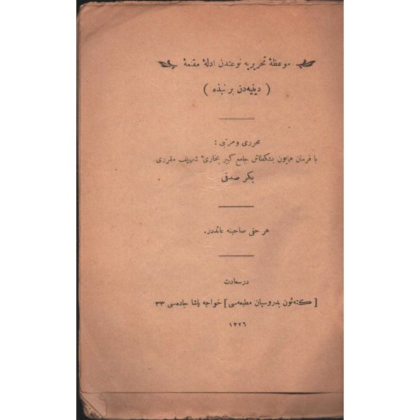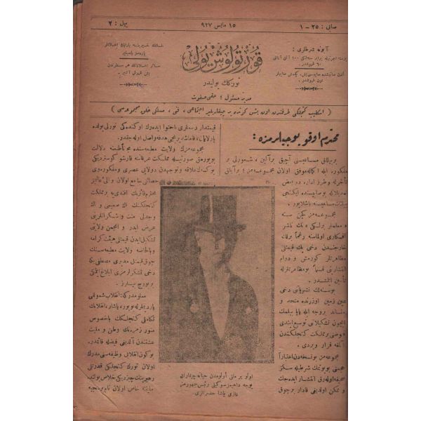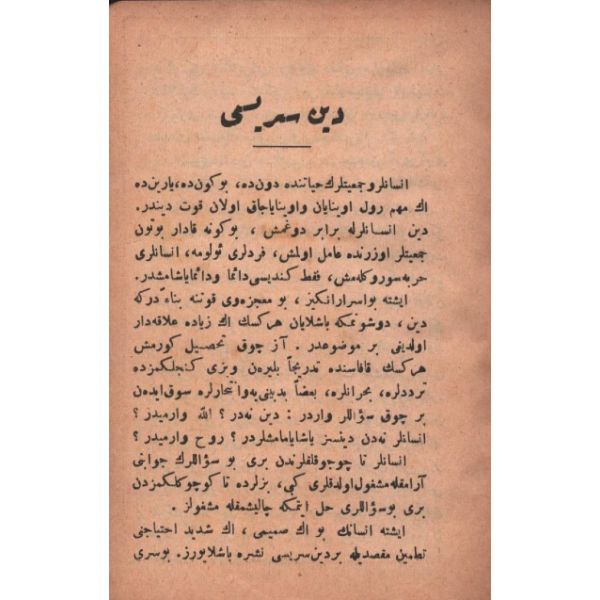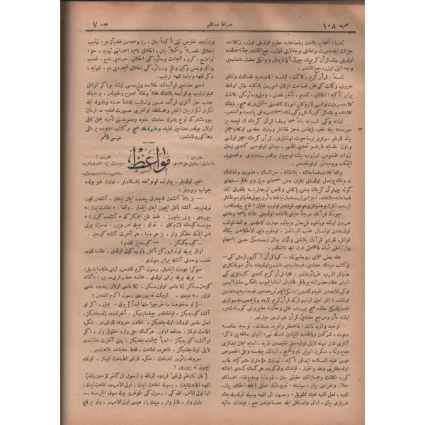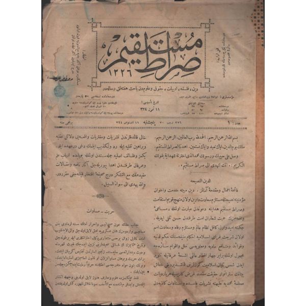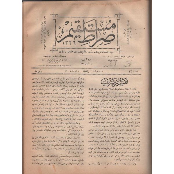 Din, Felsefe, Edebiyat, Hukuk, Ulûm´dan bâhis haftalık gazetedir. Tek bir cilt içinde ilk sayısından sırayla yirmi altıncı sayısına kadar içerir. * Cildin sırt üst kısmında yırtık mevcuttur.
