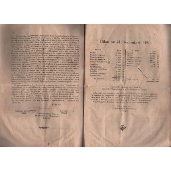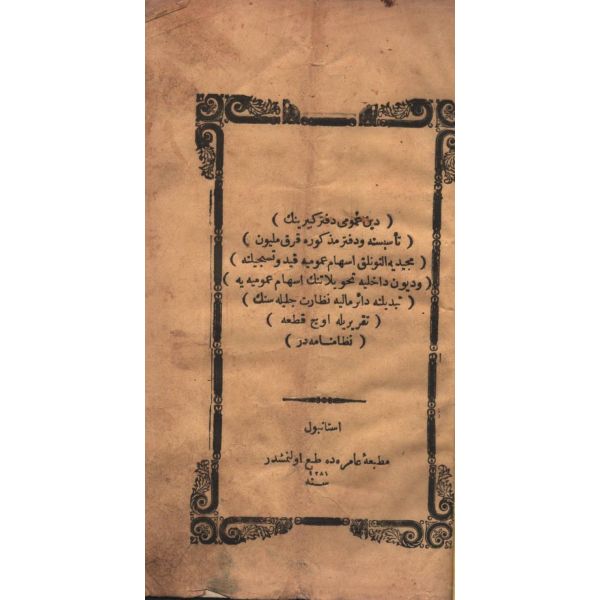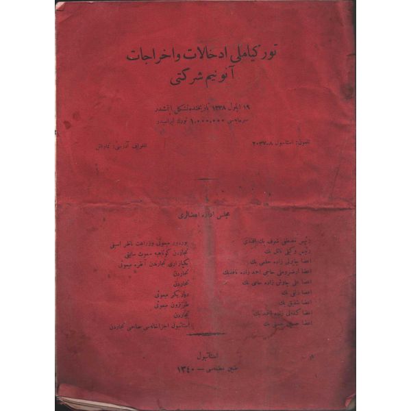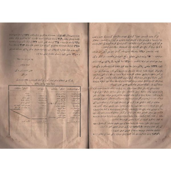 Ankara merkezli Hicri 1338 yılında kurulan şirketin rapor metnini içerir. Ön yüzünde meclis idare azalarının isimleri yazılmıştır. Metin içeriğinde yazılı olan "Meclis İdare Raporu" son kısımda Fransızca tercüme ve latin harfleriyle tekrar yazılmıştır.