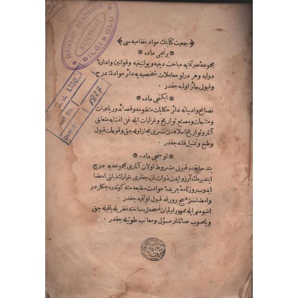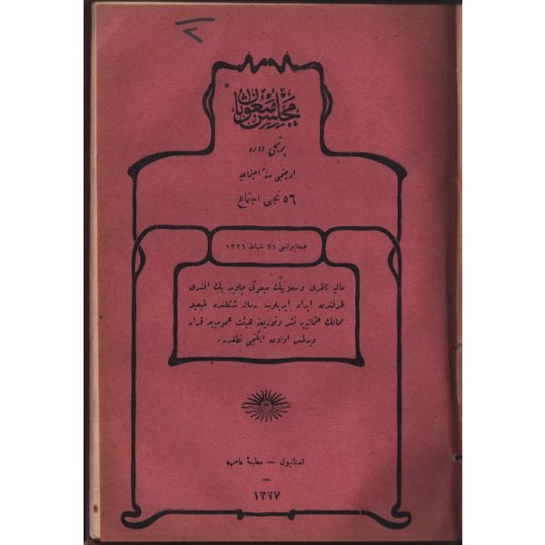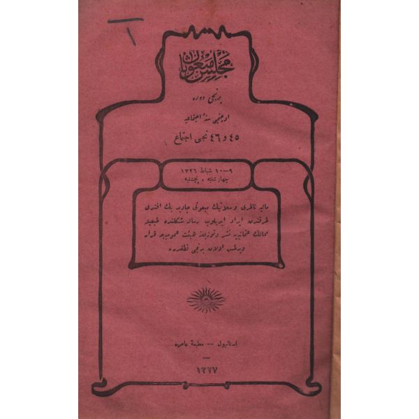 Osmanlı İmparatorluğu´nun Birinci ve İkinci Meşrutiyet dönemlerinde görev yapmış olan Meclis-i Mebûsan´ın kırk beş, kırk altı ve elli altıncı oturumlarını ihtiva eden risaledir.