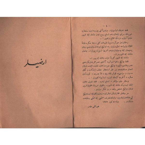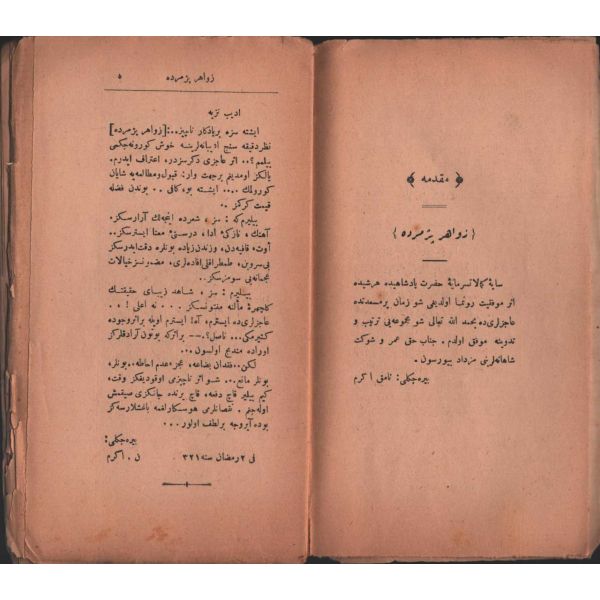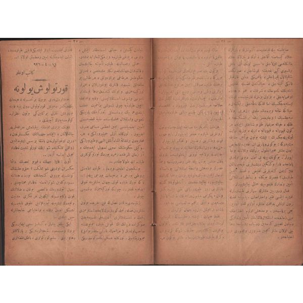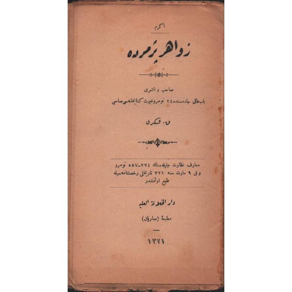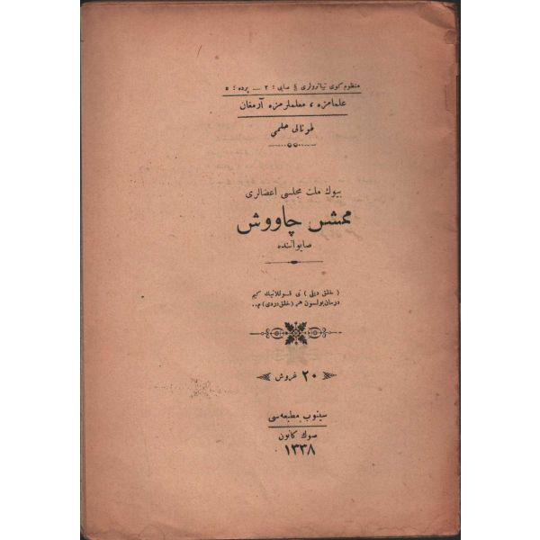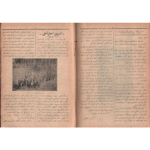 Devrin edebi, tarihi ve felsefi konularında yazılar içeren. O döneme ait haberlerde ihtiva eden aylık derginin bir sayısıdır. *Arka kapağı eksik haldedir.
