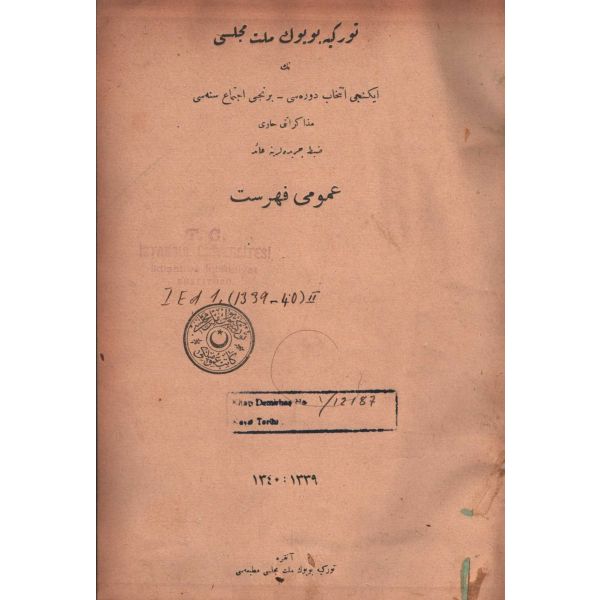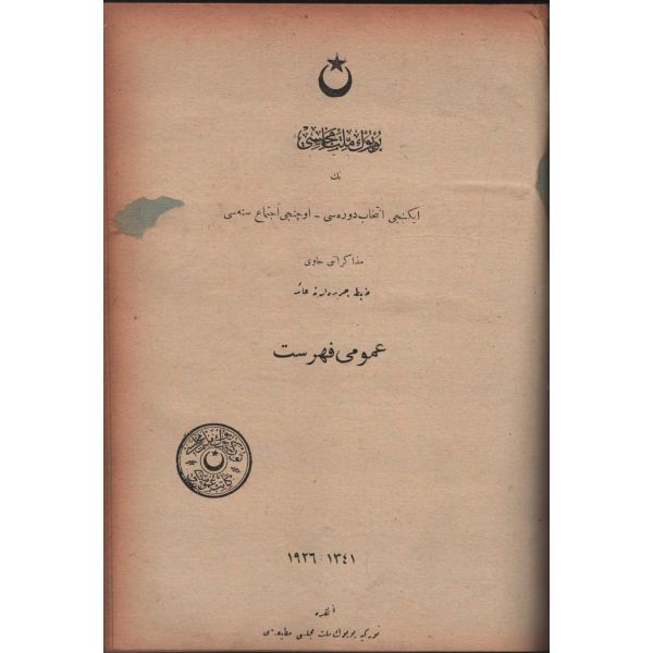 Türkiye Büyük Millet Meclisi´nin 2. dönem müzakerelerinin birinci, ikinci, üçüncü ve dördüncü oturumlarının zabıt ceridelerini kapsayan umumi fihrist. Birinci ve ikinci oturumların tarihi hicri takvime göre yazılırken, üçüncü ve dördüncü oturumun tarihleri Türkiye´de miladi takvime geçiş yılı olması sebebiyle tarihler miladi olarak yazılmıştır.