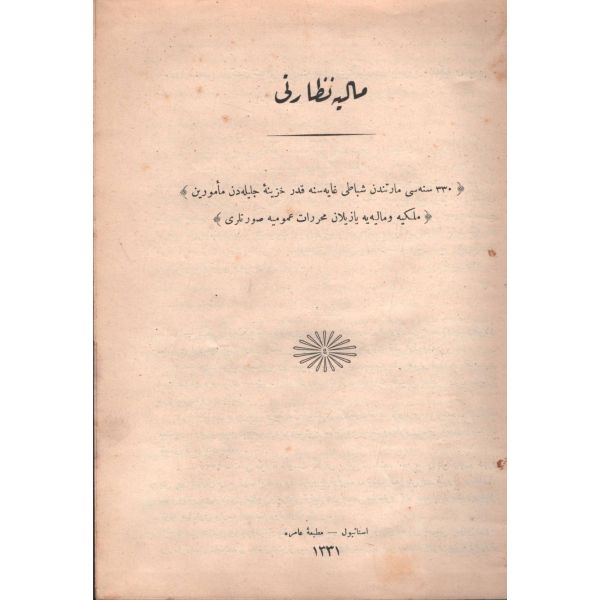 Osmanlı Devleti Maliye Nezâreti tarafından hazırlanan, 1330 senesinde Hazine-i Celile memurundan mülkiye ve maliyeye yazılan belgelerin suretlerini içeren kitap.
