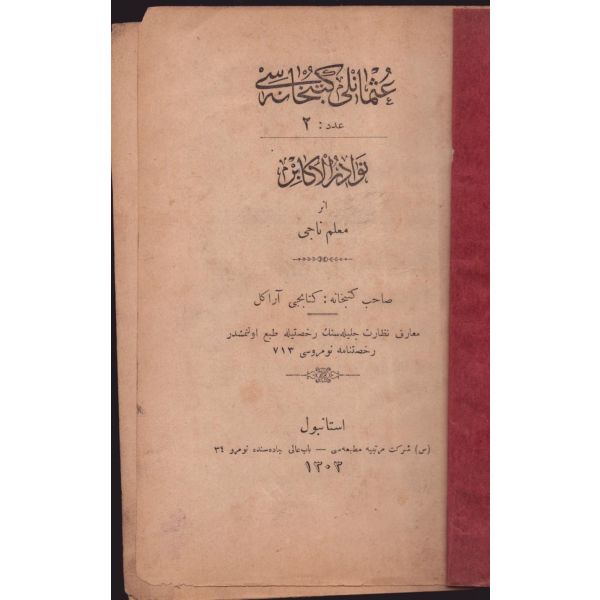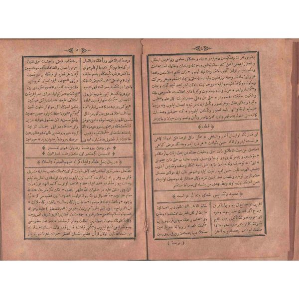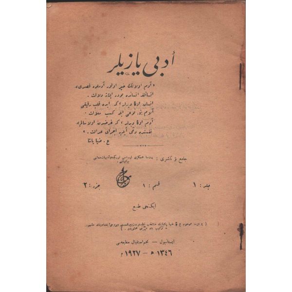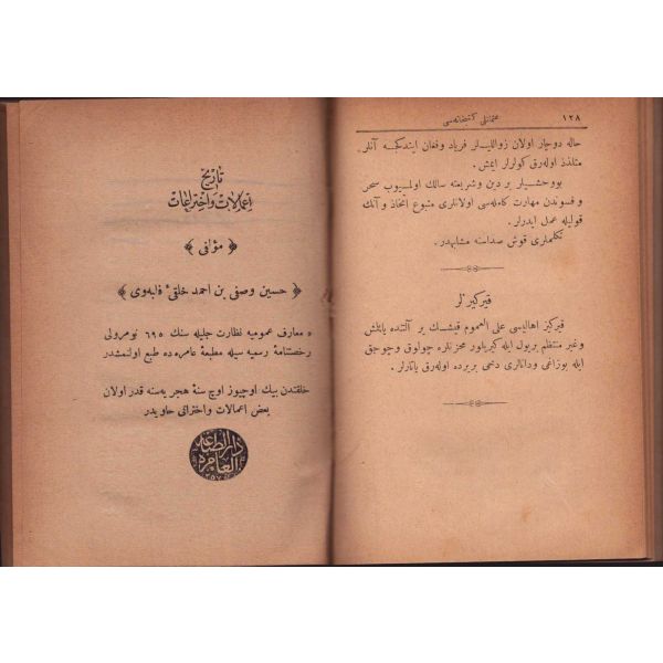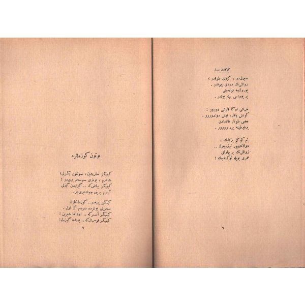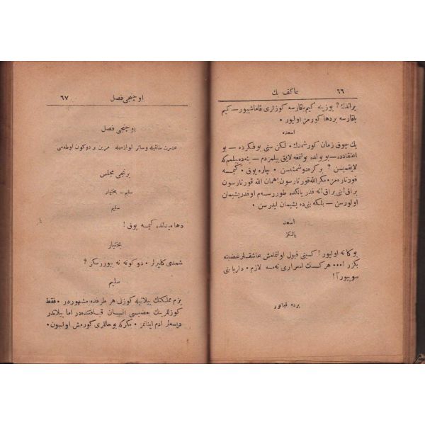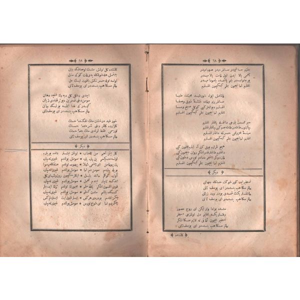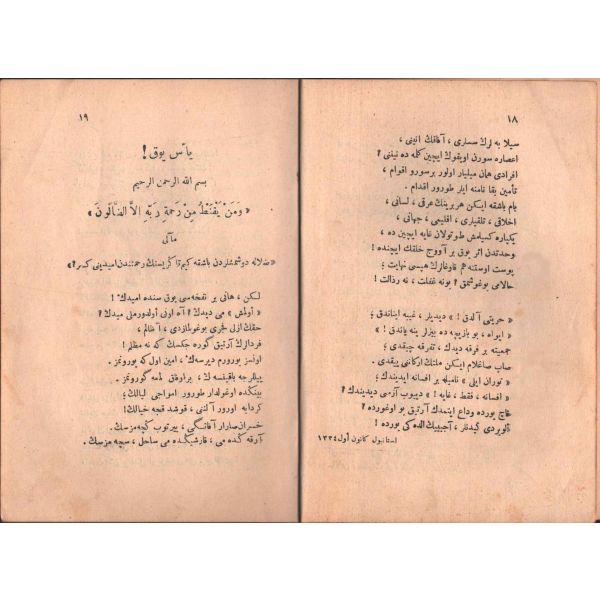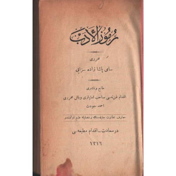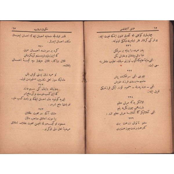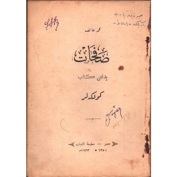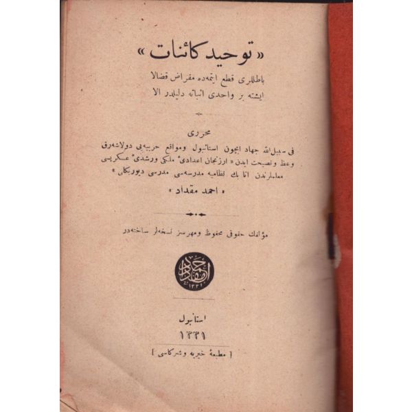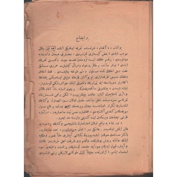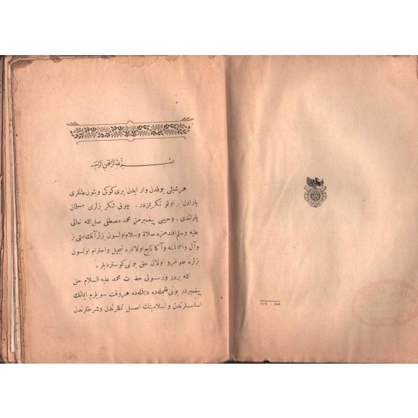 "Müntehabat-ı Eş´ar´ım birinci defa olarak 15 Safer 1279 tarihinde Tasvir-i Efkar gazetehanesinde basılmış idi. İşbu ikinci nüshası ise evvelinden ziyade sahih ve ilaveli olarak yine Tasvir-i Efkar matbaasında tab´ olunmuştur." *Künye sayfası nemden etkilenmiş. Yeni yapılmış, bez cilt içinde...