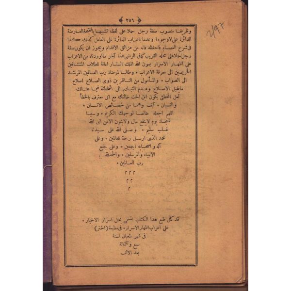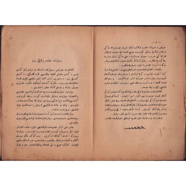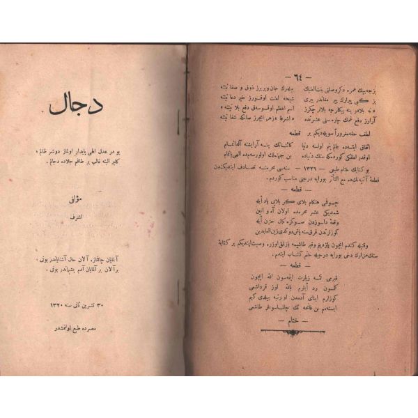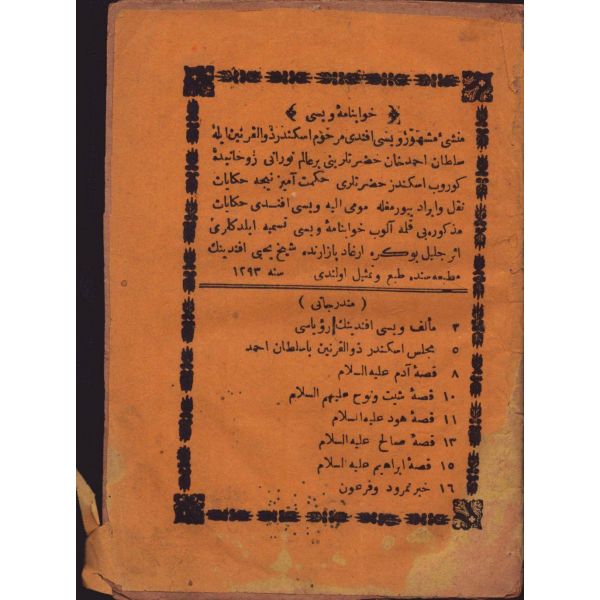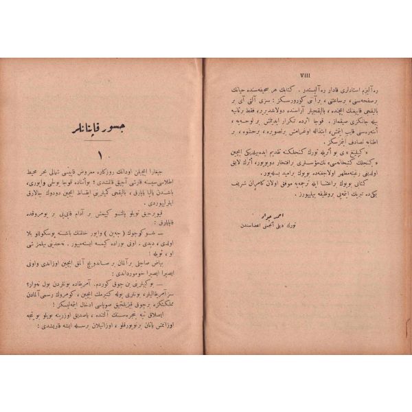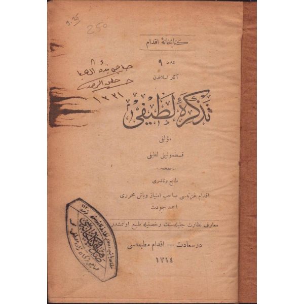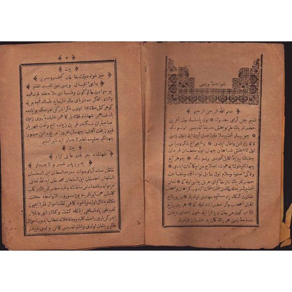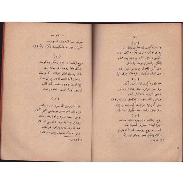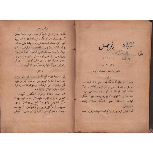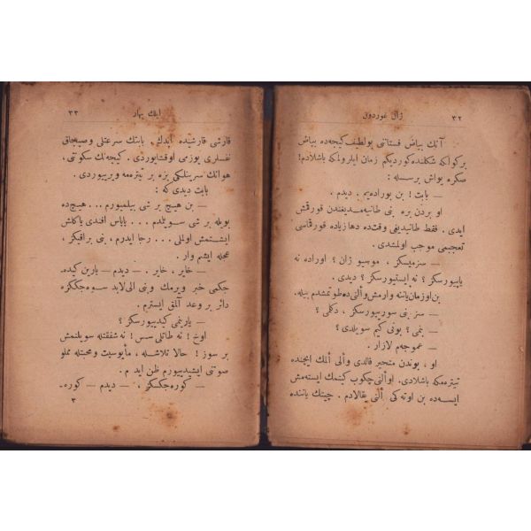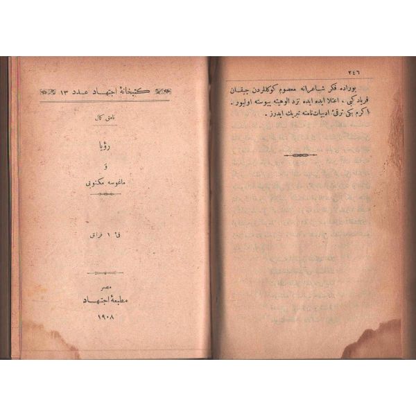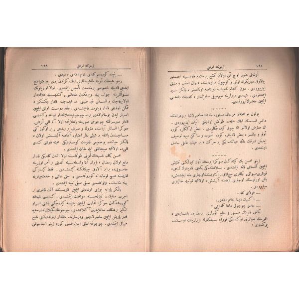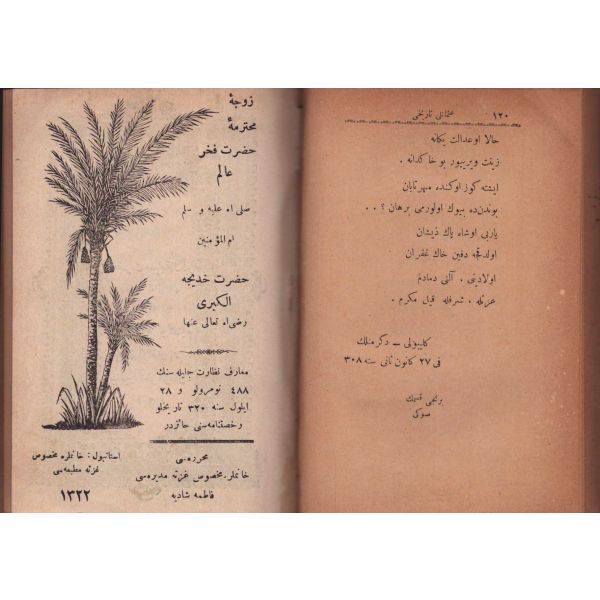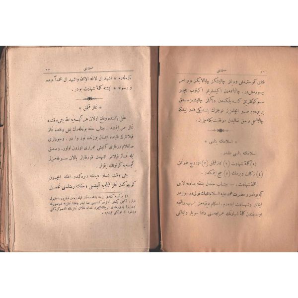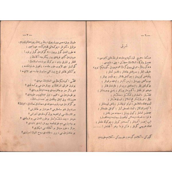 "Müntehabat-ı Eş´ar´ım birinci defa olarak 15 Safer 1279 tarihinde Tasvir-i Efkar gazetehanesinde basılmış idi. İşbu ikinci nüshası ise evvelinden ziyade sahih ve ilaveli olarak yine Tasvir-i Efkar matbaasında tab´ olunmuştur." *Künye sayfası nemden etkilenmiş. Yeni yapılmış, bez cilt içinde...