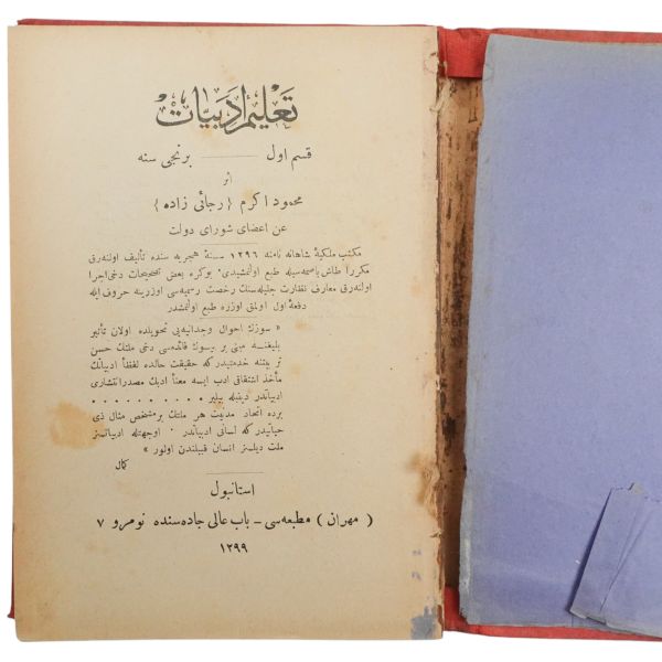 "9 Safer 1979 senesi Tabhane-i Amire´de basılmıştı. Defa´i saniye olarak marifet-i acizanemle Tasvir-i Efkar gazetehanesine tab´ olundu. 15 Şaban 1279 -Şinasi"