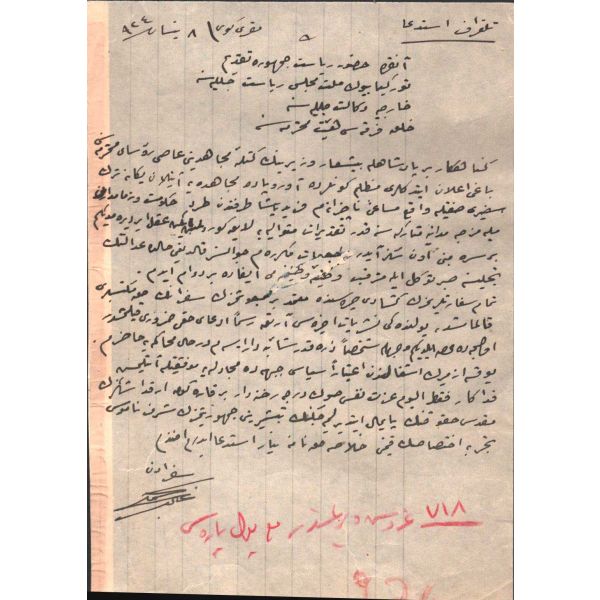 Mektup, "Günahkâr bir padişahla bî-şiar vezirinin kütle-i mücahidîni asi rüesa-yı muhteremesini bâgi ilan etdikleri muzlim günlerde Avrupa´da mücahedeye atılan yegâne Türk Sefiri sıfatıyla vaki mesai-i naçizanem Ferid Paşa tarafından tard-ı hükümet ve zemamdarân-ı milliyemizce Mudanya Mütarekesine kadar takdirat-ı mütevaliyeye layık görülmüş iken akıl erdiremediğim bir sırra mebni on sekiz aydır müracaat-ı mükerrerem cevabsız kaldığı halde adaletin tecellisine sabr-ı tevekkül ile müterakkib ... vazifemi ifada berdevam idim..." şeklinde başlamaktadır.
