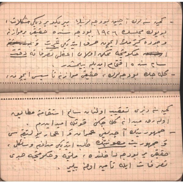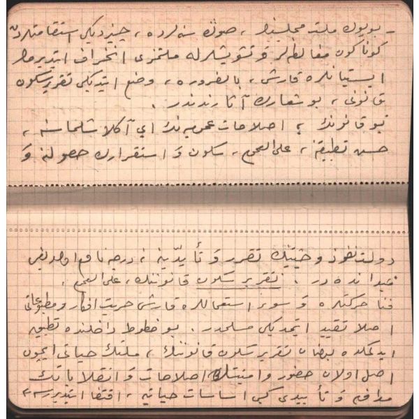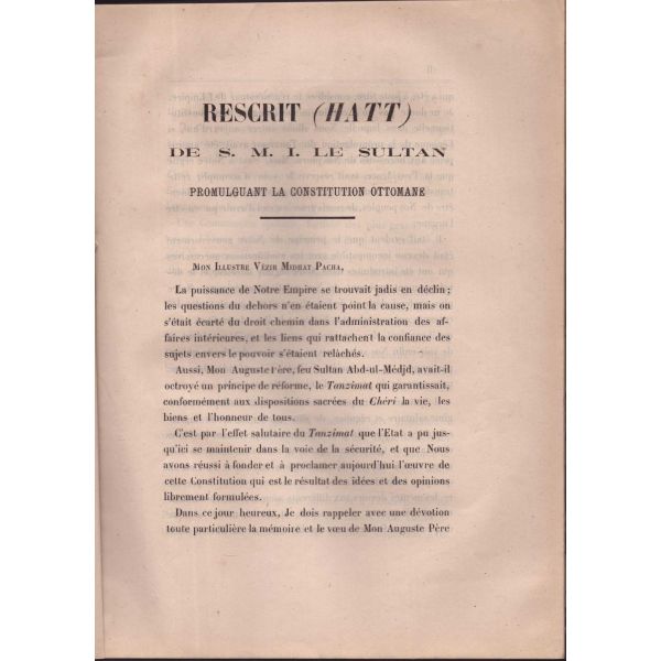 "…Zaten emr-i hükümetde tarik-i müşavere ve meşrutiyet aslolub bu mühimme-i meşruaya münafi ve şekl-i maruf-ı meşrutiyete mugayir olan suver-i hükümet cebin hakka, istibdadın adle muvakkaten tagallüb ve tahakkümü seyyiesinden ibaret olmakla her zaman merdud ve milletin o vakitki kabiliyet ve istidadı derkâr ve Kanun-ı Esasi´nin bu kabiliyet ve istidada muvafık olarak tertib eylediği Nezd-i Şahanelerinde müsellem, Hatt-ı Hümayunlarında musarrah iken bazı rical-i hükümetin ihdas eylediği müşkilat-ı mevhume üzerine koca bir milletin ..."