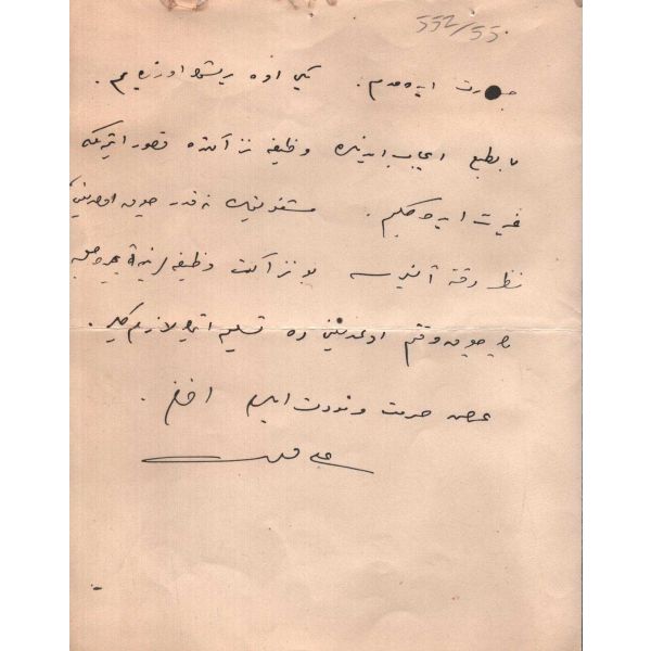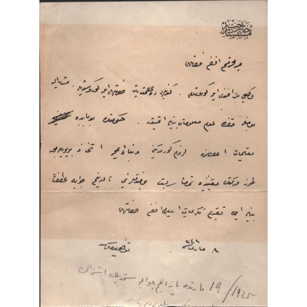 Mektup, "… eski eve kimseyi davete cesaret edemedim. Yeni eve yerleşmek üzereyim. Bittabi icab edenlere vazife nezaketinde kusur etmemeğe gayret edeceğim. Meşguliyetimin ne kadar çok olduğu nazar-ı dikkate alınırsa bu nezaket vazifelerine ayıracak pek çok vaktim olmadığını da teslim etmek lazım gelir..." ifadelerini içermektedir.