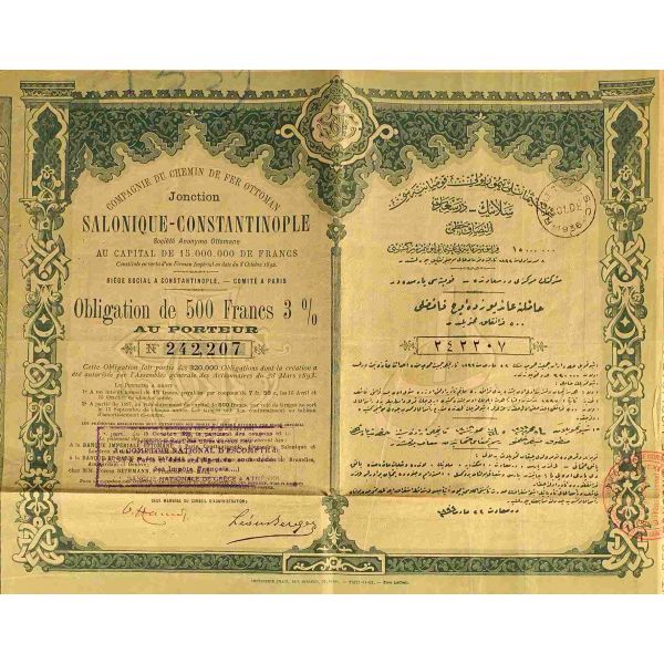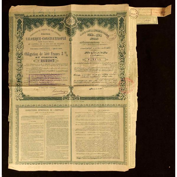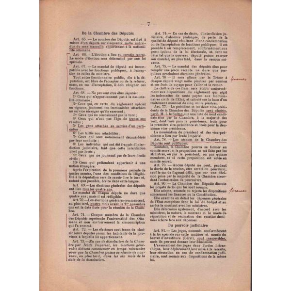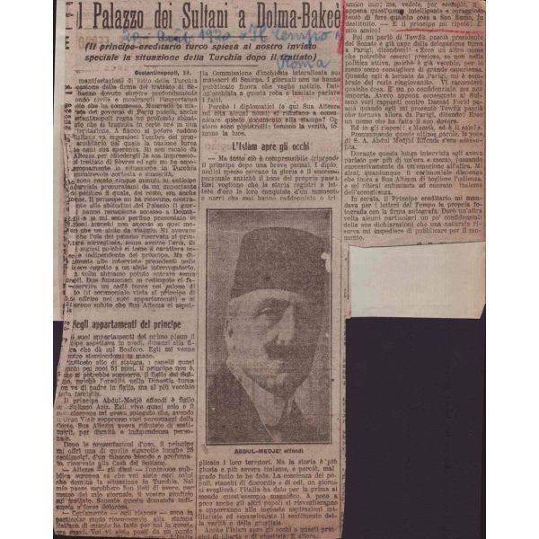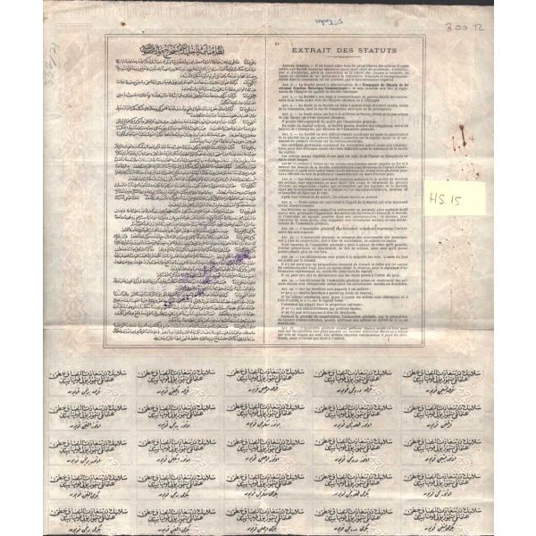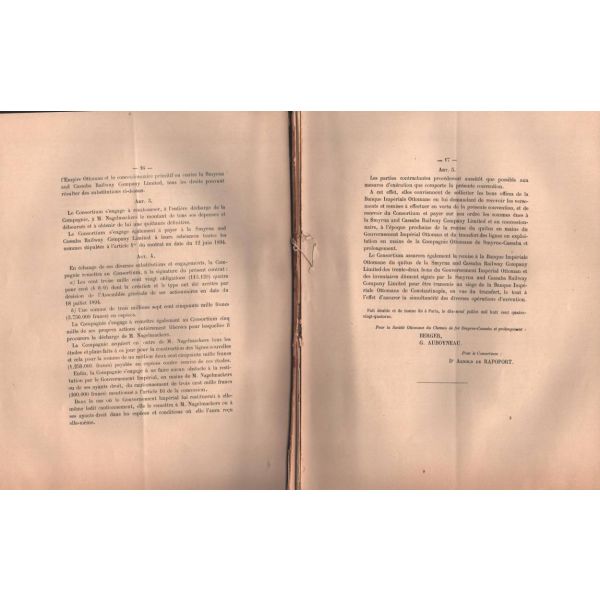 Lot dahilinde ayrıca, 5 sayfalık Fransızca gazete kupürü mecmuası, 23 Haziran 1910 tarihli Osmanlı Kamu Hizmeti İmtiyaz Yasası maddelerinin yer aldığı Fransızca kitap sayfası ve gazete kupürü mevcuttur.
