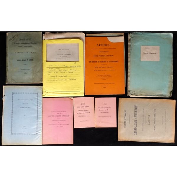 Lot dahilinde İstanbul borsasına dair bir kongre metni, Anadolu Osmanlı demiryolu hatlarının nizamnameleri, yabancı sigorta şirketleri hakkında nizamname, Osmanlı İmparatorluğu´nun iç ve dış borçlarına dair müzakere, yabancı dilde gazete kupürleri vd. evrak bulunmaktadır.