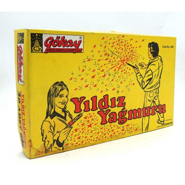 "Kullanma Şekli: 1- 18 yaşından küçükler kullanamaz. 2- Siyah ucu kibrit kenarına sürterek tutuşturun. 3- Karanlıkta yakılırsa Yıldız Yağmuru daha bir zevkle seyredilir."