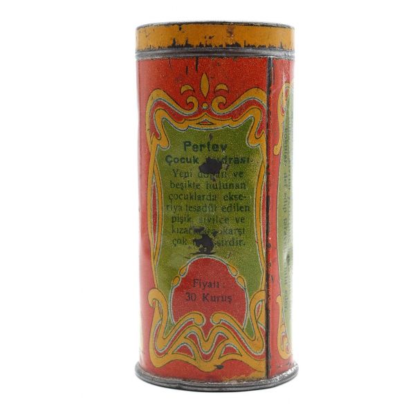 "Pertev Çocuk Pudrası diğer pudralardan başka bir tertip olup Talk pudraları ile mukayese edilmemlidir. Mızadı taaffün hassasından dolayı cildde ve bilhassa kıvrım yerlerinde hasıl olan fena kokuları def edip taravet, temin eder."
