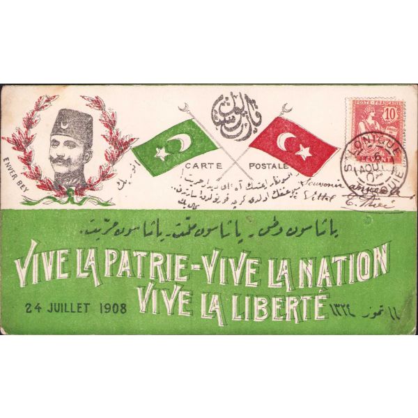 Kırmızı Bayraklı tarafta Sultan Mehmed Reşad Han ve Başkumandan Vekili Enver Paşa imzalı Beyanname İ Hümayun sureti vardır. Yeşil Bayraklı tarafta ise dönemin Şeyhülislamı Ürgüplü Hayri Efendi imzalı fetvayı şerif bulunmaktadır. 11 Kasım 1914 tarihinden itibaren 3 gün boyunca Fatih Camii avlusunda fetva emini Ali Haydar tarafından 3 gün boyunca halka okutulmuştur.