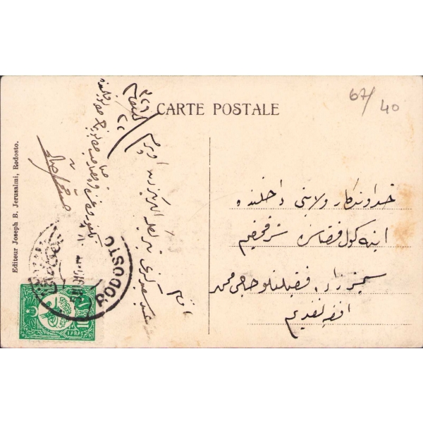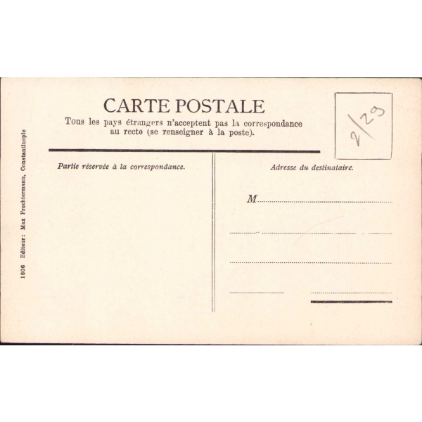 Arka Yüzünde ''Herman Boyacıoğlu Kartpostal Koleksiyonu'' ve ''İlk Kartpostal Sergisi... Yapı ve Kredi Bankası Sanat Galerisinde 'Kartpostallarla Eski Türk Hayatı' (1895-1920) Sergisinde teşhir edilmiştir. (16/12/1970 - 9/1/1971)'' kaşeleri mevcuttur.