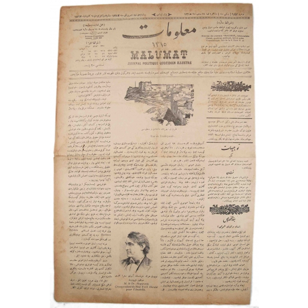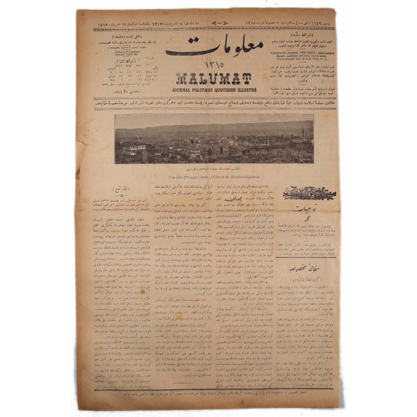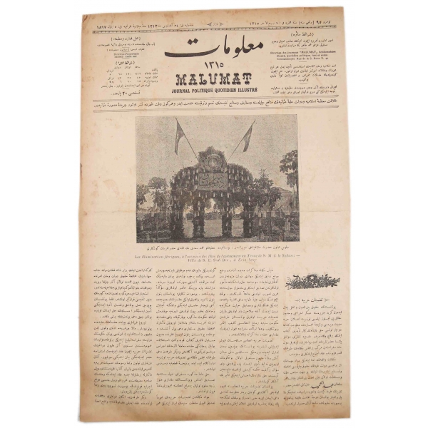 Malumat Gazetesi, Mehmed Fuad ile Artin Asaduryan’ın birlikte 48 sayı çıkarıp kapattıktan sonra Mehmet Tahir tarafından alınarak devam ettirilen ve yayın hayatının birinci yılından sonra Servet-i Fünun topluluğunu birleştirecek hareketler yaratan dergidir. 1894 tarihinde yayın hayatına başlamıştır. Muallim Feyzî, Hüseyin Dâniş ve Müstecabîzâde İsmet Bey gibi eski tarzda şiirler yazan şairlerin yanı sıra, başta Tevfik Fikret olmak üzere İsmail Safâ, Süleyman Nazif, Hüseyin Sîret, Abdullah Cevdet gibi genç isimler de yer almaktaydı. Malumat, devrin diğer mecmualarından farklı olarak resim ve fotoğrafa bolca yer vermekte idi. Bu özelliği dolayısıyla “Musavver Malûmat” adıyla da tanınacaktı. Derginin görselleri, dönemin ünlü ressamları ve fotoğrafçıları sayılan Abdullah Efendi ve Ressam Vefiyadis tarafından hazırlanmış olup dönemin paşaları, kasaba, şehir, rıhtım, iskele, okul, cami, gemi, savaş topları bazen tarihi mekânlar bazen de şehirlerde yer alan önemli devlet dairelerinin diğer unsurlar ile ilgili birçok fotoğraf bulunmaktadır. Fotoğrafın kime ya da nereye ait olduğu, fotoğrafın hemen altında Türkçe, Arapça ve Fransızca olarak açıklanmıştır.