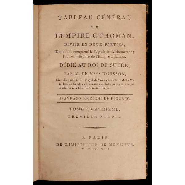 İsveçli diplomat ve yazar Ignace Mouradja d´Ohsson (1740-1807) Ermeni kökenli olup İstanbul´da doğar. İsveç kralının Babıali´deki elçisinin yazmanı, tercümanı, vekili (maslahatgüzar) görevlerinde bulunur, tam yetkili bakan olur, daha sonra ise Wasa Şövalye sınıfı üyesi rütbesini alır. 1784 yılında yüksek kademelerde bulunan kişilerle ilişkileri sayesinde bir Batı Avrupalı için erişilmez bir ortam olan Osmanlı Sarayı yaşamına ve ayrıntılarına ulaşmayı başarır. 1788 yılında Paris´te yayınlanan «Tableau général de l’Empire Othoman» başlıklı görkemli eserinde islâm dini kurumlarından başka, cami, mezar, dua, dinî tören gibi konuları işler; kitabın 1789´da yayınlanan ikinci kısmında Osmanlı devletinin tarihini yazar. Mouradja´nın ölümünden sonra oğlu tarafından yayınlanan üçüncü kısım ise sulh, siyaset, ağır ceza ve askerî hukuk kanununu içerir. Mouradja´nın eseri Osmanlı İmparatorluğu başkentinin toplumsal kurumları ile örf ve adetleri hakkında değerli ve özgün bir tanık niteliğindedir.