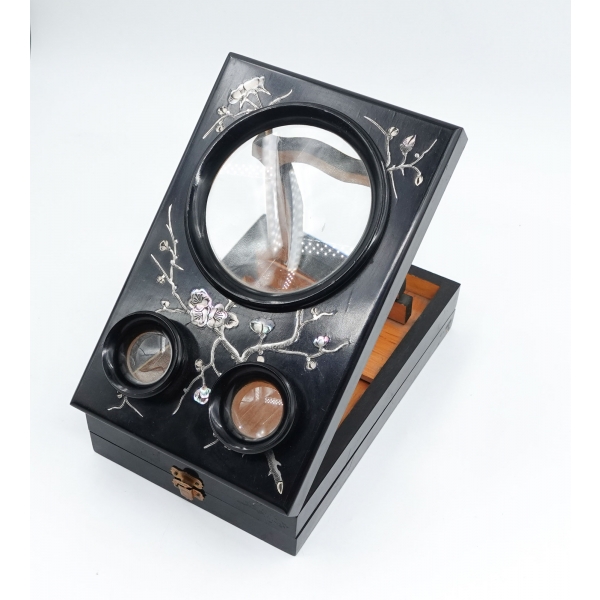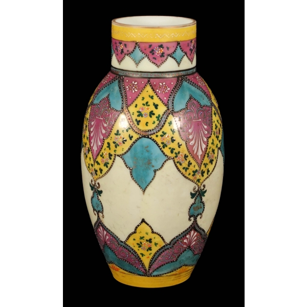 Fransa´nın Sarreguemines şehrinde 1860 ile 1922 seneleri arasında faaliyet gösteren "Paul Utzschneider & Cie" firması tarafından üretilmiştir. Fincan ve tabak üzerinde yer alan desenler, Avrupa´nın Uzak Doğu ile olan ticareti dolayısıyla yaşanan kültürel etkileşimin bir neticesi olarak ortaya çıkan chinoiserie tarzını yansıtmaktadır.