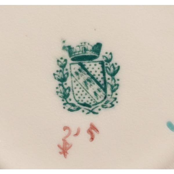 "Meissen Porcelain" markasının damgasını taşımaktadır. Damga üzerinde yer alan iki çizgi marka tarafından kalite standartını ortaya koymak açısından kullanılmıştır.