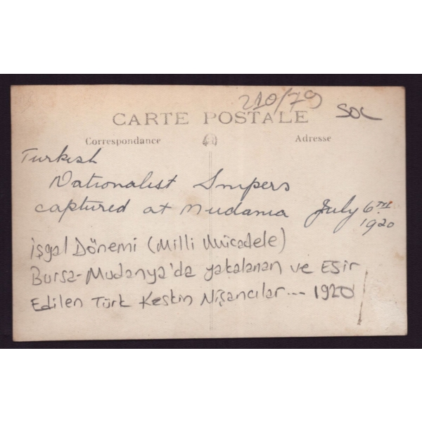 Fotoğrafın ön yüzüne, mecliste görülen belli başlı isimler not düşülmüştür (soldan sağa): "Yaveri - Yaveri - Yaveri - Gazi Paşa - Matbuat - Tevfik Rüşdi (Aras) Bey" Fotoğrafın arka yüzüne ise "İkbal?" Hanım´a hitaben, "Yeni Meclis Binası - Çok güzel ve çok mükemmel bir binadır. Matbuatın diye gösterdiğim locanın yanı başındaki loca da Sâmi´nin locasıdır. Teşrinisani birde o locada idik... Gaziyi o locadan güzelce gördük..." notu düşülmüştür.