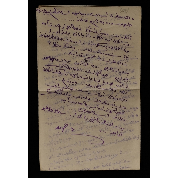 "Necip Fazıl Kısakürek - İstanbul" yazılı zarfıyla müzayedemize sunulan 9 Ocak 1953 tarihli, eski harflerle kaleme alınan mektup, şu ifadeleri içermektedir: "Eski dostum ve yeni ümidim; (Yeni Sabah)´ın bugünkü nüshasını kıymetlendiren yazınıza hayran oldum ve düşümdümki sizin gibi idraklar ve kalemler mevcud oldukça; bu memlekette, bu mahzun vatanda, bir gün yaşamaya değer bir hayat ümidine hala ... vardır. İntiram ve iştiyaklarımı? kabul ediniz!"