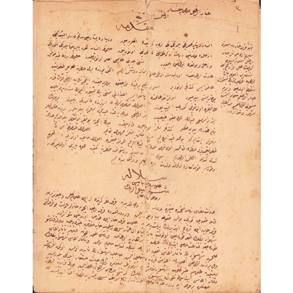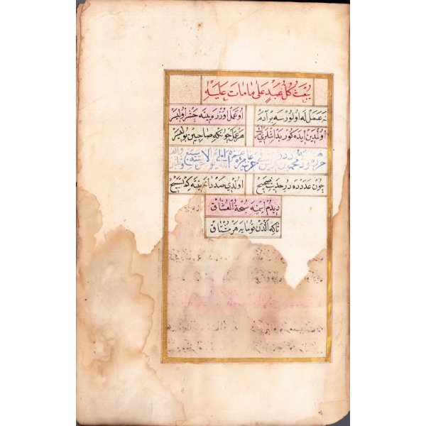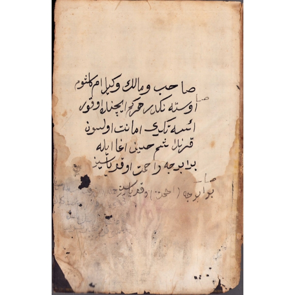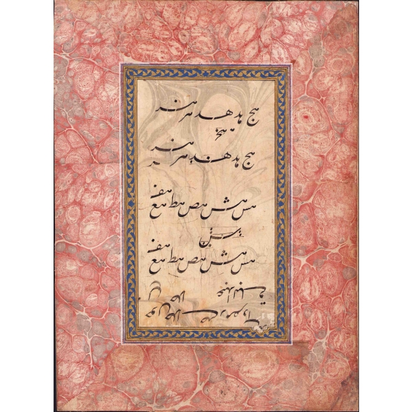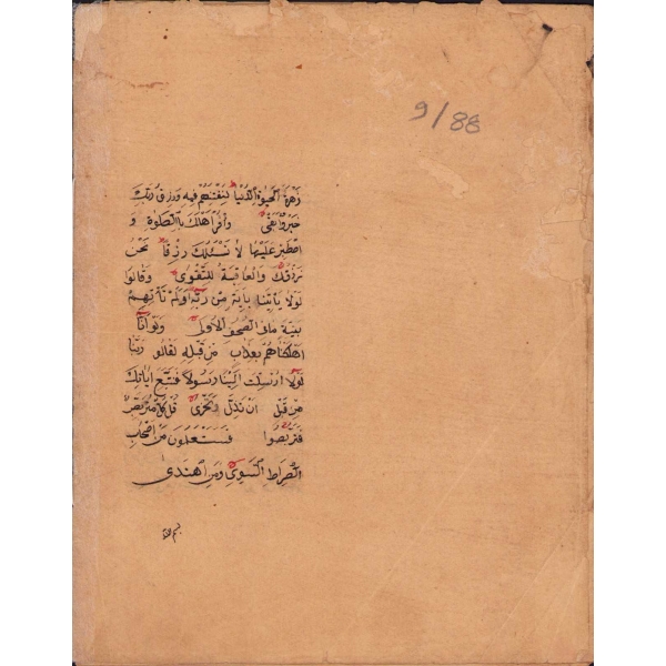 Arapça ketebenin tamamı ‘Unzur keyfe ketebe ve lime ketebe Kâtibü’s Sultan Bayezid’ şeklinde olup, Türkçe manası ‘Bak! Sultan Bayezid’in katibi nasıl ve ne için yazdı! şeklindedir. Sülüs karalamanın bir parçası kopuk ve bazı yerlerinden katlı vaziyettedir.