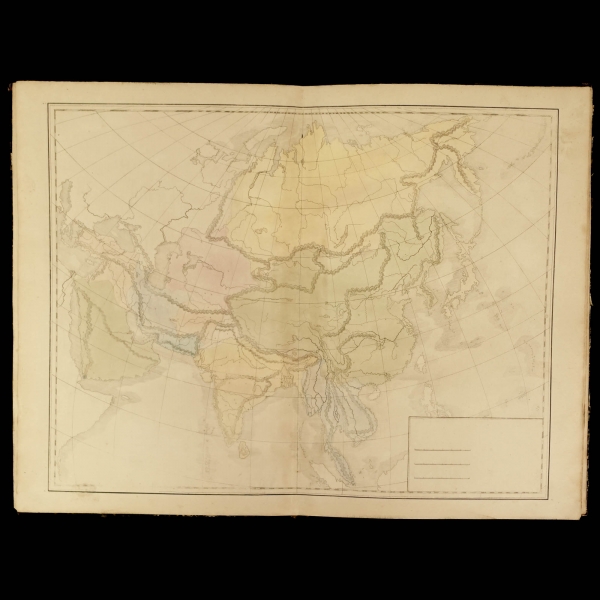 Kiepert tarafından hazırlanan "Dünyanın her yerini gösteren yeni el tipi atlas"ın, tamamen düzeltilmiş ve genişletilmiş ikinci baskısı. Günümüze eksiksiz ulaşan atlas içerisinde 45 adet harita yer almaktadır. Kenarları deri kaplamalı tümüyle bez dönem cildinde. Kapak köşelerinde pirinç koruma başlıkları mevcuttur (arka kapağın alt köşesindeki eksik). İç kapakları ebrulu. *Deri sırtı kopmuş, geriye bez kaplama kalmıştır.