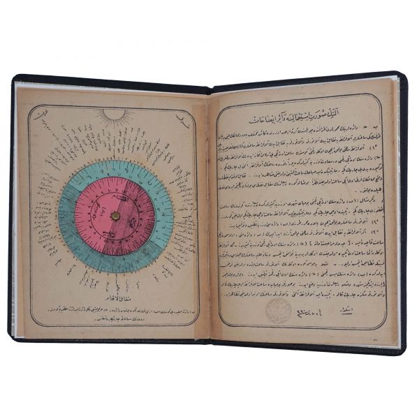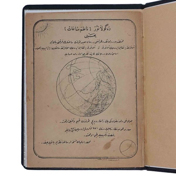 Alaturka saatlerini tesbit etmeye mahsus Regülatör isimli Alet Şekli." Eserin ikinci sayfasında müellifin mührü bulunmaktadır. (Sofokli veled-i Nikolaki). Eser katlanabilir şekilde tek tarafı baskı bir tarafı boş olarak 4 sahife şeklinde katlanıp, raptiye ile hareketli hale getirilmiştir.