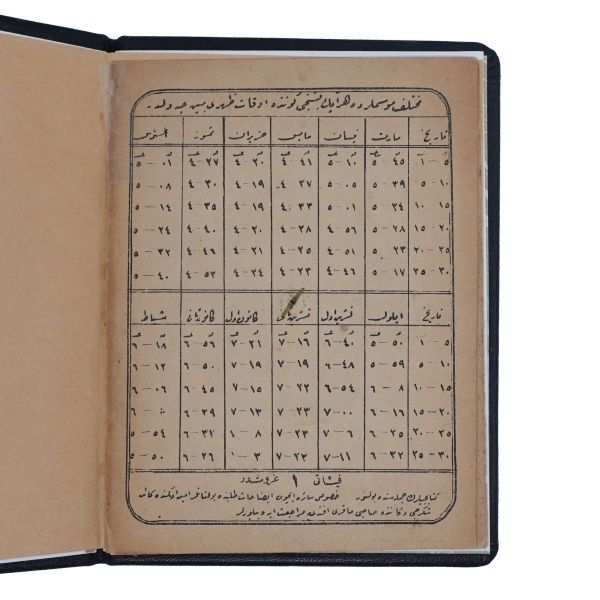 şehirlerin isimleri ile denk geldikleri saatleri tafsilatlı olarak gösteren cetveller. 4.Sayfada muhtelif mevsimlerde her ayın beşinci gününde öğle vaktinin saat kaça denk geldiğini gösteren tablo.