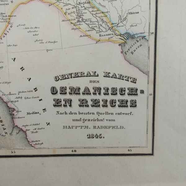 Haritanın sağ üst köşesinde yer alan başlıkta, Sultan Birinci Abdülmecid´in tuğrası ve "Prusya Devleti Erkan-ı Harbiye zabıtanından mülükanem zabıtan ahz-u tersim birle Nemçe lisanı üzere tab etmiş olduğu Darü´l-Hilafet-il Aliyye ve civarı haritasının bu defa saye-i maarifperaiye-i hazret-i hilafetpenahide Mekteb-i Fünun-u Harbiye-i Cenab-ı Tacidarî´de Lisan-ı Türkiye tercüme olunarak bit-tersim tab ve temsil kılınan kopyasıdır. 1268" notu yer almaktadır. Haritanın sol üst köşesinde ise Mekteb-i Harbiye-i Cenab-ı Mülükane ve Mekteb-i Adliye-i Şahane binalarının çizimlerine yer verilmiştir.