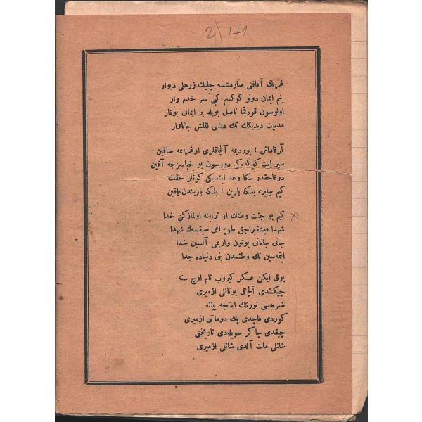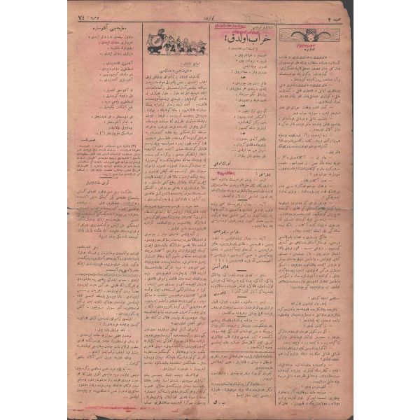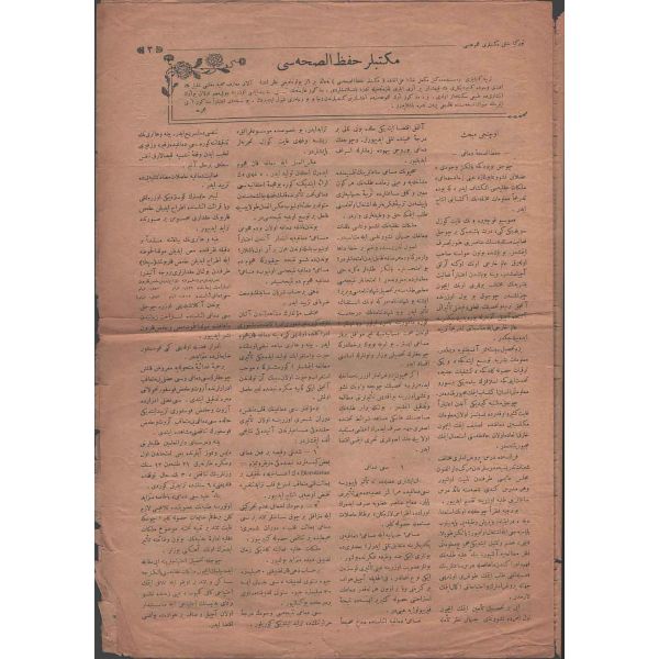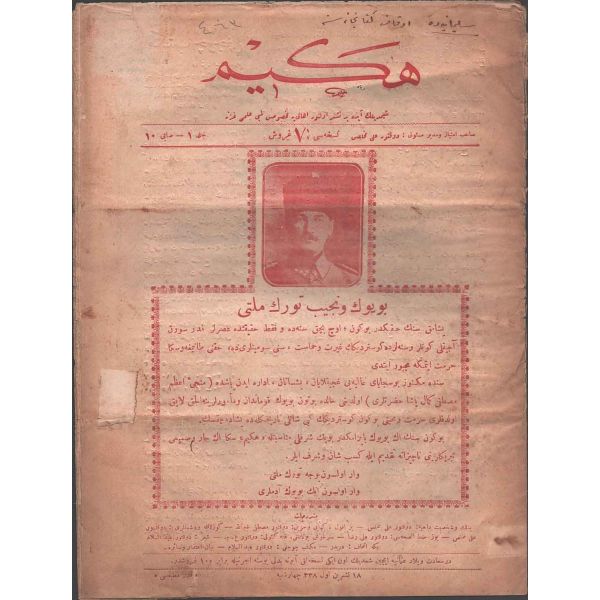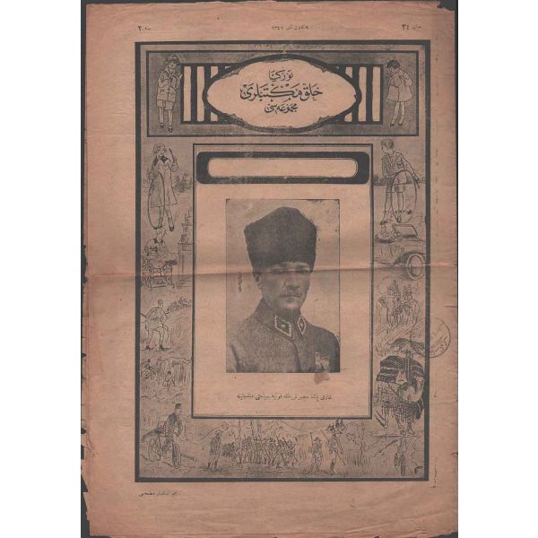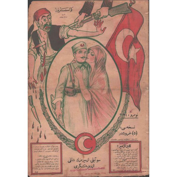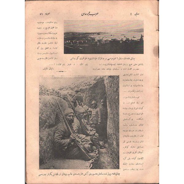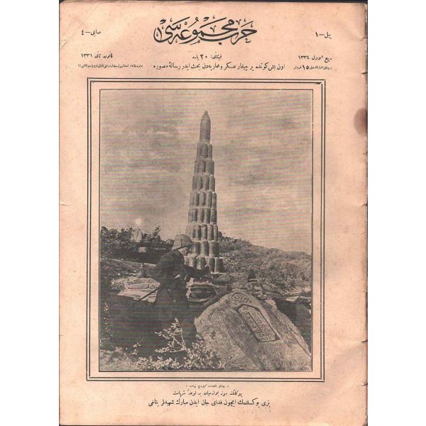 Rebiülevvel 1334 tarihli mecmuanın kapak yazısı: "Büyüklüğüne söz bulunamayan bir levha-i şehamet. Bizi yükseltmek için feda-yı can eden mübarek şehidler yatağı" 24x34 cm