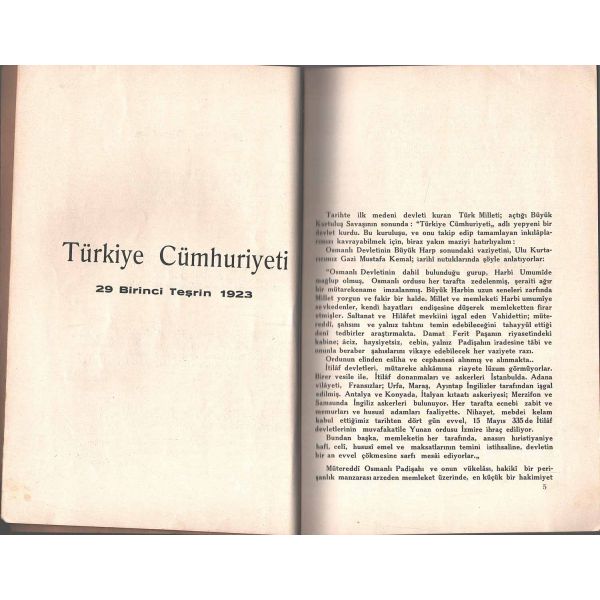 "Bugün Cümhuriyetin onuncu yıl dönümünü kutlulıyoruz. Her büyük millî bayramı kutlulamayı talimatnamesiyle vazife edinmiş olduğu kadar heyecanını duyduğu ve saygısını tekrarlamayı bir borç bildiği için her defasında kutlulama işine ön ayak olan Ankara Halkevi, bu eşsiz ve büyük bayram gününe bütün kudreti ve heyecanı ile iştirak etmiş bulunmaktadır. On yıl içinde yeni baştan yurt, yeni baştan millet, yeni baştan her şeyi yapan cümhuriyetin müsbet ve feyizli eserlerinden biri olan Ankara Halkevi, bugün, kendisinin cümhuriyet sayesinde ve cümhuriyetin eseri olarak neler yaptığını, En Büyüğümüzün işaret ettiği ve üzerinden gittiği yolda ne kadar ilerlediğini göstermek için bu kitapçığı neşretmeyi faydalı buldu. Bugün salonlarında cümhuriyetin onuncu yılını tebcil eden heyecanlı sözler, hareketler ve işler doldurup taşıran Ankara Halkevi bu güzel vesileyi fırsat bilerek bir de yazı ile bu bayramların en büyüğünü bütün Türk milletine En Büyüğüne duyduğu sonsuz saygıyı tekrarlamayı bir inan ve ülkü borcu bilir."