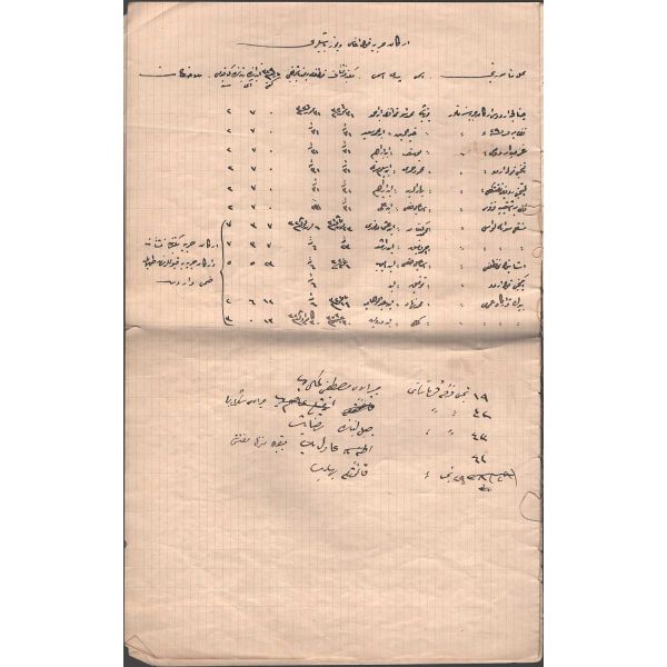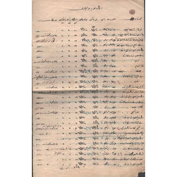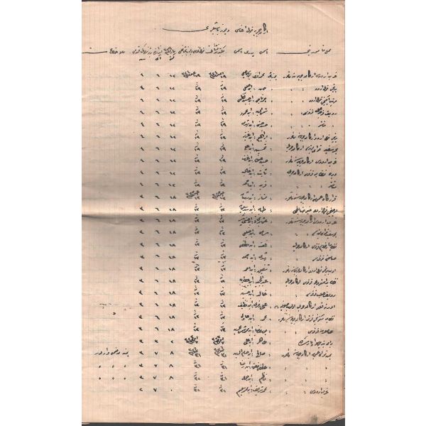 Listenin en başında Enver ve Cemal Paşaların isimleri mevcuttur. Listede esas olarak paşaların isimleri, memuriyetleri, Harbiye'ye duhulleri [girişleri] ve göreve başlama süreleri ile ilgili kayıtlar mevcuttur. Mustafa Kemal Atatürk'ün Çanakkale'de 19. Fırka Kumandanı olduğu sıralarda ismi bu listede yer almaktadır. Osmanlı askerî tarihi bakımından oldukça önemli bir belge niteliği de taşımaktadır. Listede, Mustafa Remzi Paşa, Fua Paşa, Ali İhsan Paşa, Ali Said Paşa, Muhyiddin Paşa, Kâzım Karabekir Paşa, Nureddin Paşa, Salih Paşa, Ahmed Tevfik Paşa gibi dönemin birçok paşası ve yüzlerce askerin isimleri ve haklarında önemli bilgiler mevcuttur.