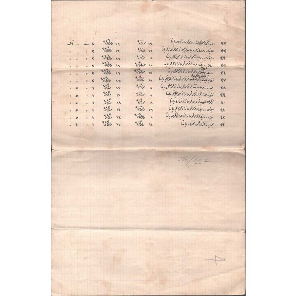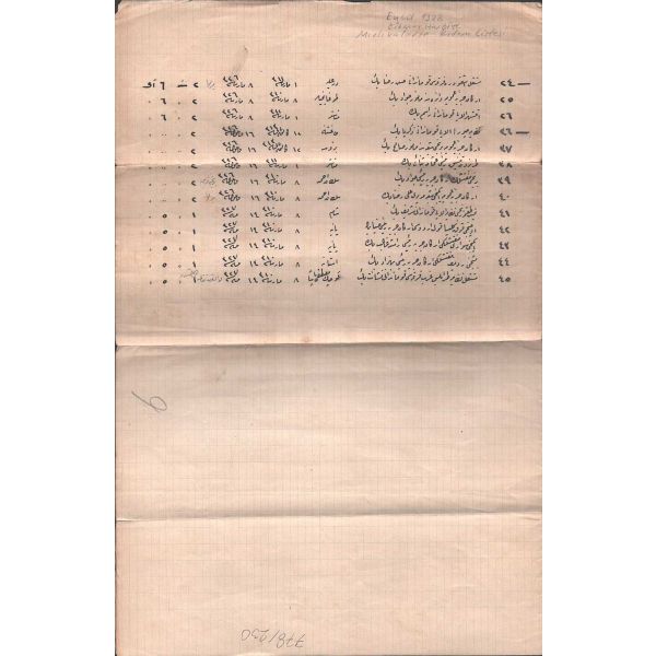 Listede çeşitli rütbelerdeki paşaların isimleri, memuriyetleri, tayin edildikleri tarihler ve haklarında bilgiler kaydedilmiştir. Listede Avni Bey, Mustafa Hamdi Bey, Hafız Refet Paşa, Ali Hikmet Paşa, Adil Paşa gibi dönemin kumandan ve askerlerinin isimleri kayıtlıdır.