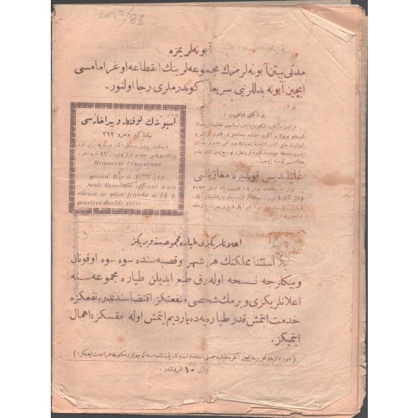 PHEBUS EPHEMERA, 20.05.2023 saat: 22:00'a kadar internet sitemizden pey verebilirsiniz. 22:02 itibariyle canlı müzayedemiz başlayacaktır. Kitap, Dergi ve süreli yayın hariç tüm ürünlerden % 20 ürün KDV'si alınmaktadır. Komisyon Oranı: % 20 + KDV'dir. ÖDEME SÜRESİ MÜZAYEDE BİTİMİNDEN SONRA 1 HAFTADIR.