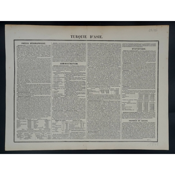 Ayrıca Türkiye hakkında istatiski bilgiler içeren Fransızca metin mevcuttur.