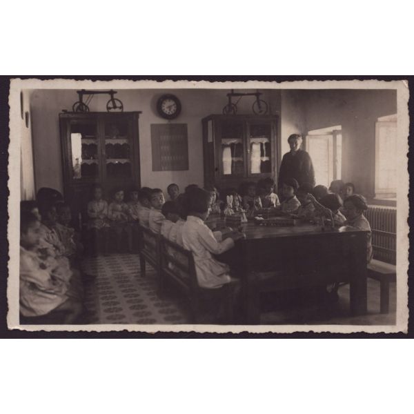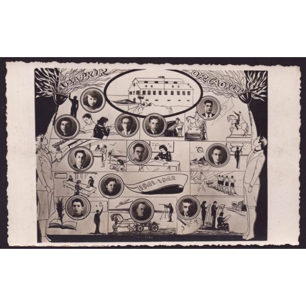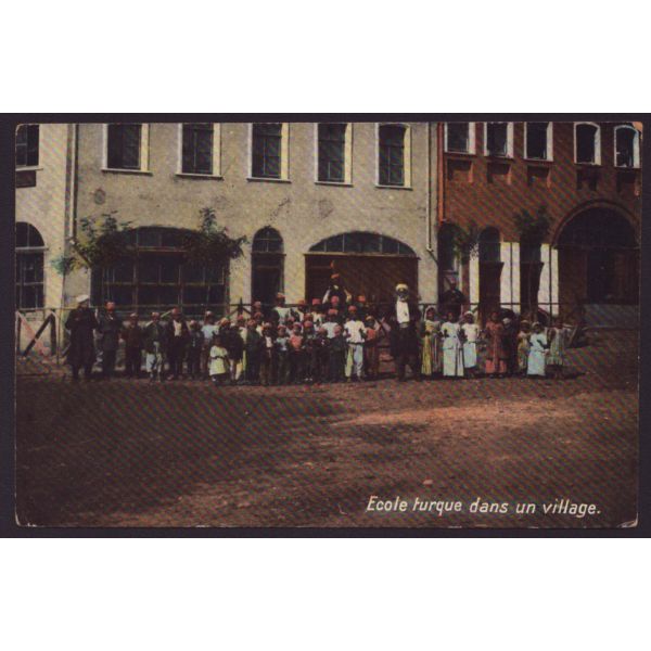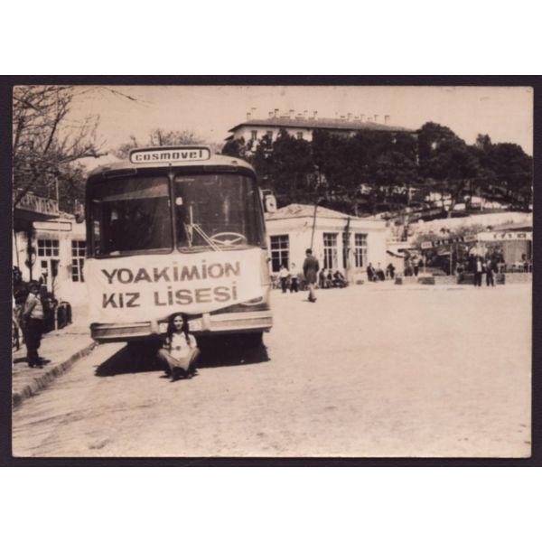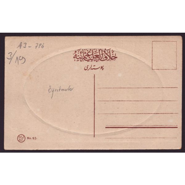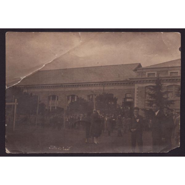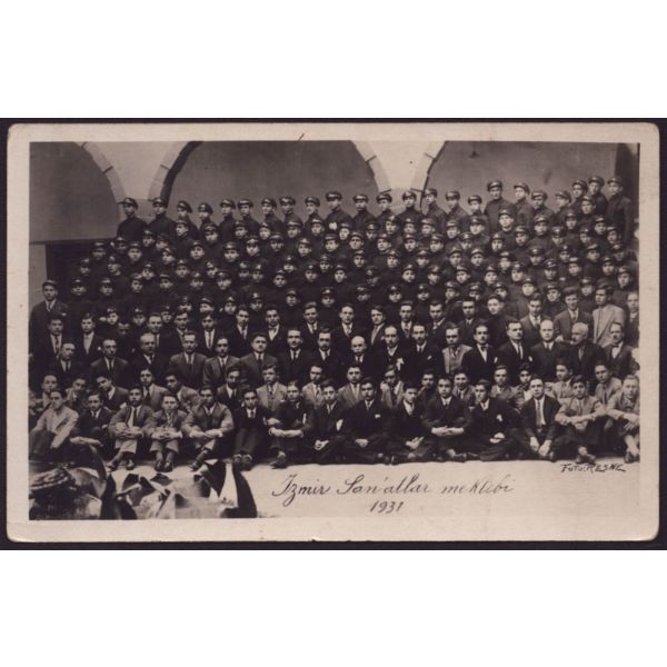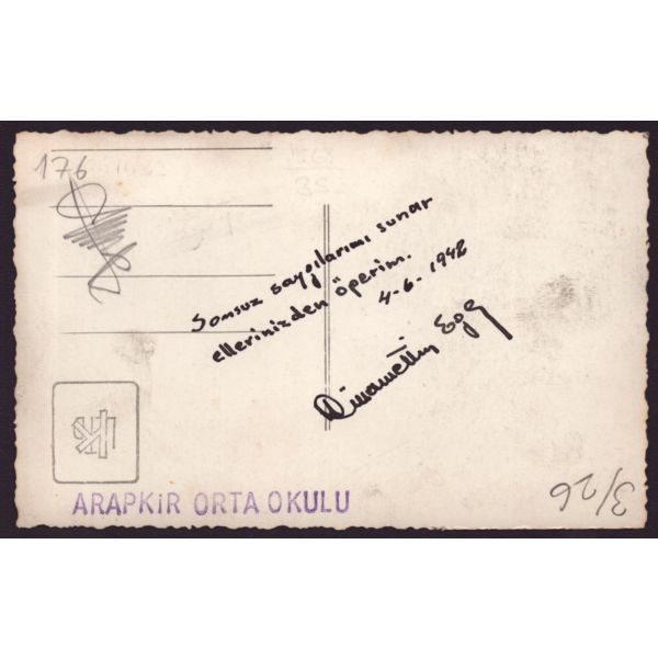 Fotoğrafın arka yüzünde okulun kaşesi ve "Sonsuz saygılarımı sunar, ellerinizden öperim " notu yer almaktadır.