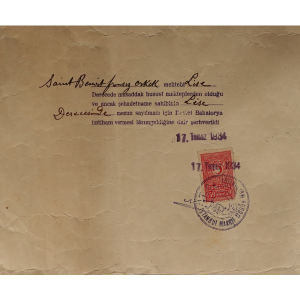 Okul müdürünün mührünü taşımaktadır.