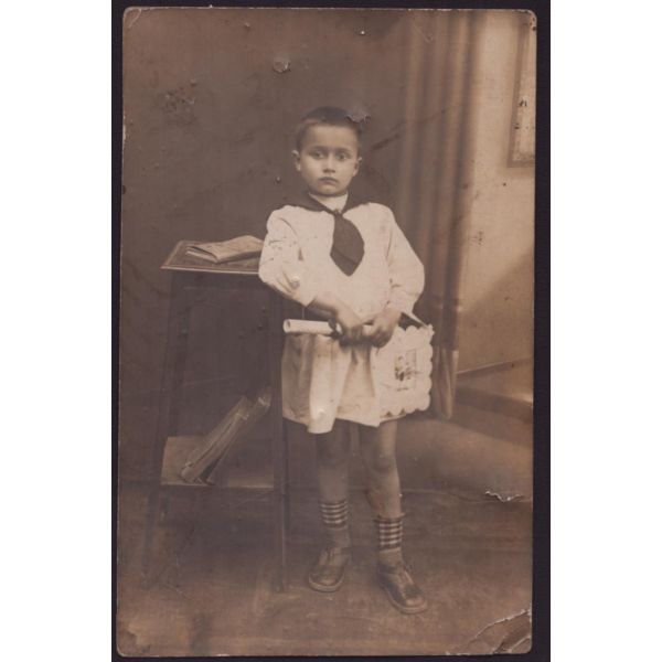 Fotoğrafın arka yüzünde, "Sabahaddin´in ilkmektepten şehadetname aldığı tarihte çekilmiş resmidir." yazılıdır.