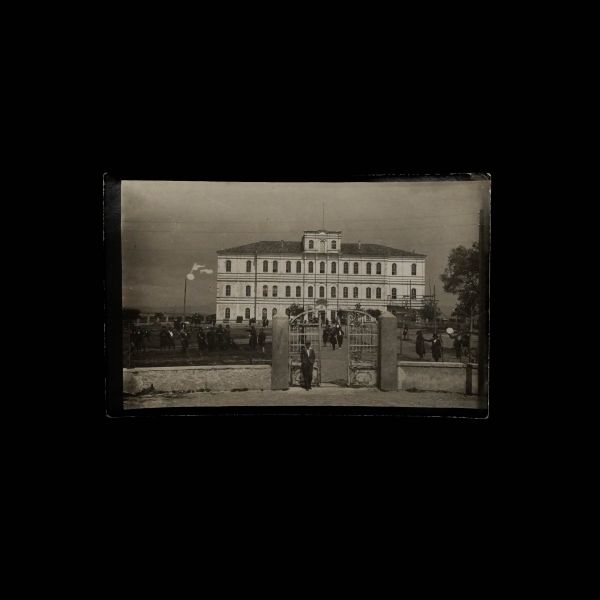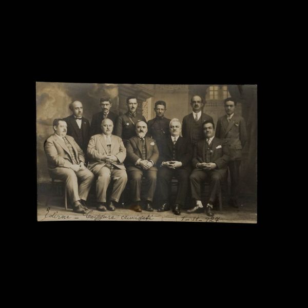 Fotoğrafın arka yüzüne şu not düşülmüştür: "23-IV-1934 Çocuk bayramında merasimden sonra ilk mektep çocuklarının bayramlaşması esnasında alınmış bir fotoğraf."