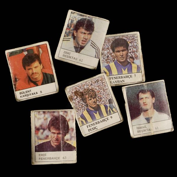 Lot içeriği: 1) Fenerbahçe 7 Kayhan 2) Fenerbahçe 9 Pesiç 3) Fenerbahçe 63 Erdi 4) Beşiktaş 62 Zeki 5) Beşiktaş 61 İsmail 6) Karşıyaka 8 Bülent. *Kartlar yorgun kondisyondadır.