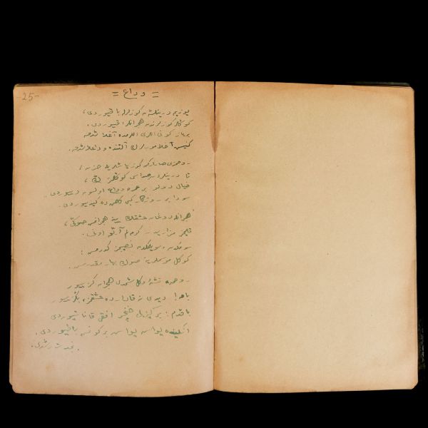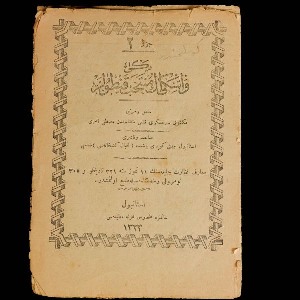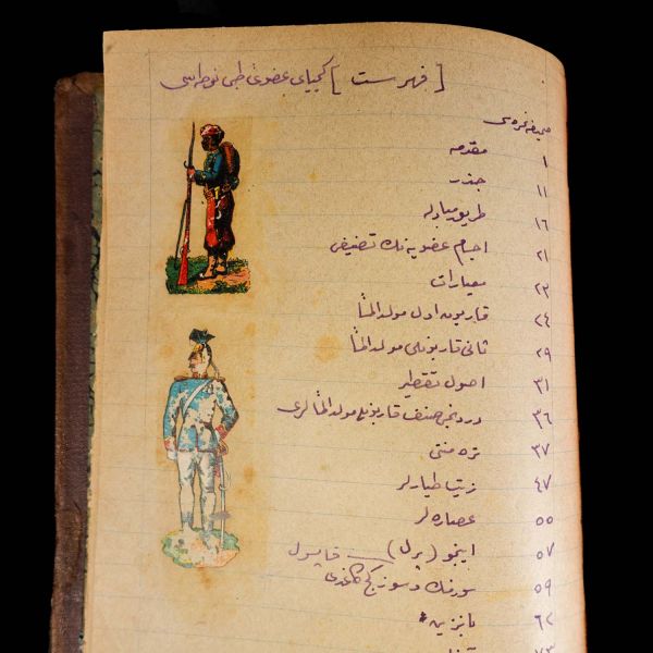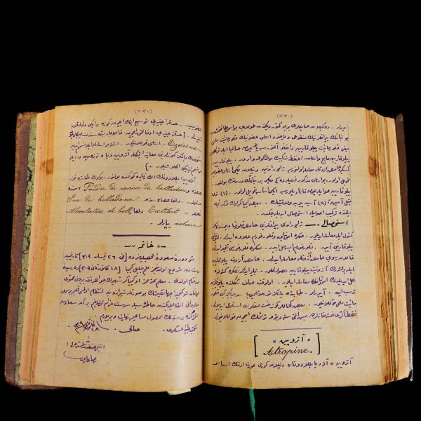 Defterin ilk sayfasında, "Hoca-ı Azizim Kimyager Ferik Della Suda Faik Paşa Hazretleri´nin ders esnasındaki takrirlerinden" notu yer almaktadır.Ay yıldızlı deri cildinde.