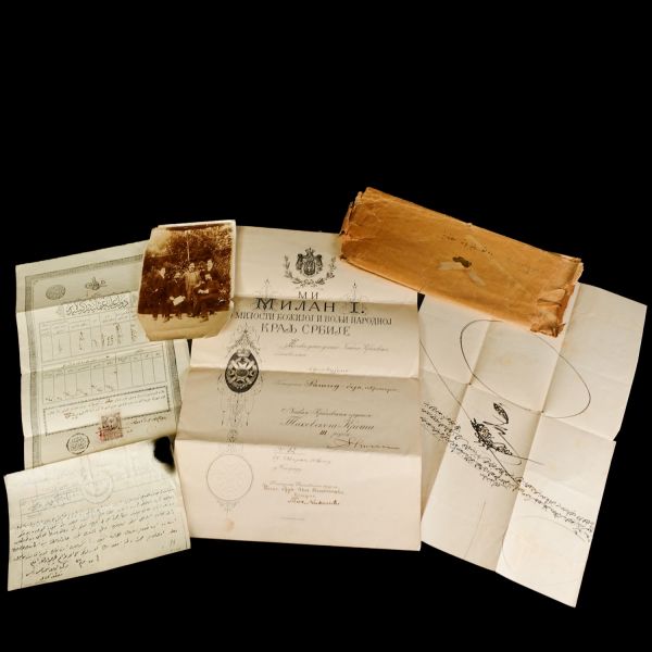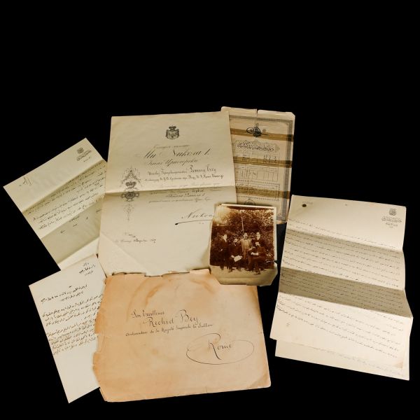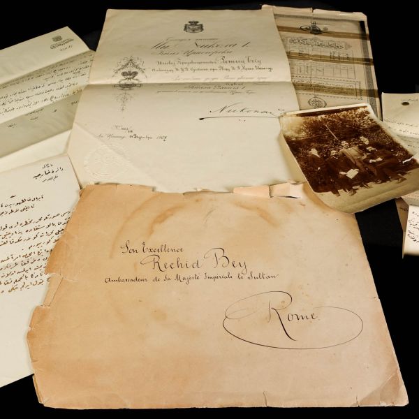 Evraklar arasında, Mustafa Reşit Paşa´nın aile efradı ile aldırdığı hatıra fotoğrafı, Mustafa Reşit Paşa´nın ve oğlunun nüfus tezkiresi (Osmanlı Devleti kimliği), Mustafa Reşid Paşa adına gönderilmiş biri Osmanlıca diğeri Fransızca yazılı mektup zarfları ve Bab-ı Ali Hariciye Nezareti antetli çok sayıda evrak...