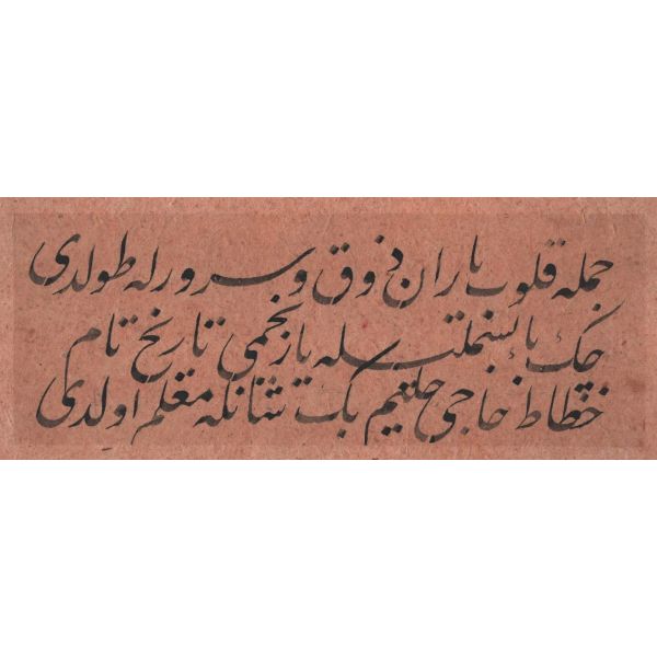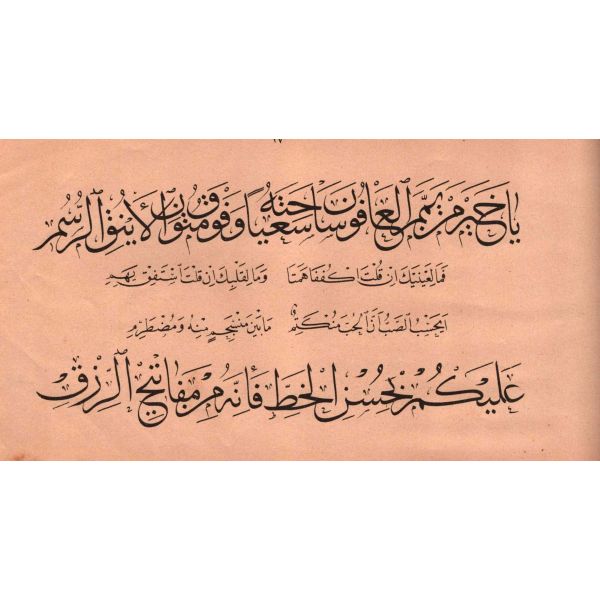Tarih düşürmekteki maharetiyle de meşhur olan Necmettin Bey, uzun bir süreden sonra Halim Efendi´nin memuriyete alınmasından çok sevinç duyar ve bunu kaleme alır. Halim Efendi de kendisine yazılan bu beyitleri nefis ta´lik hattıyla yazar.