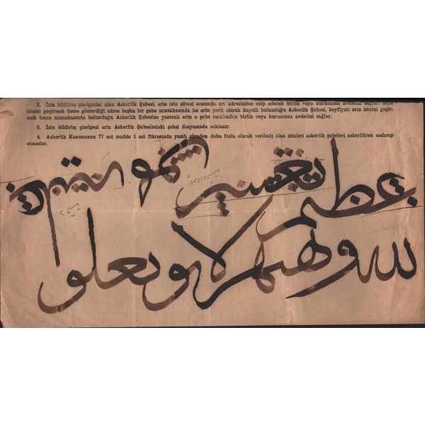 Kazasker Mustafa İzzet´in istifinin eski dönemde yazılmış bir kalıbı olduğu düşünülmektedir. anlamı: