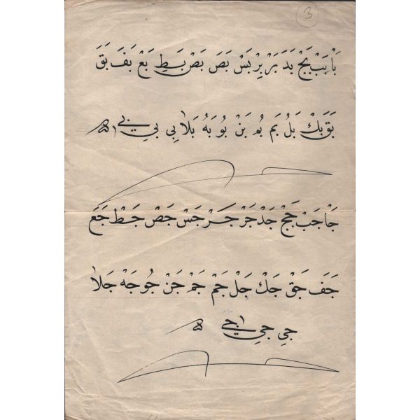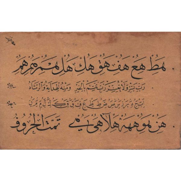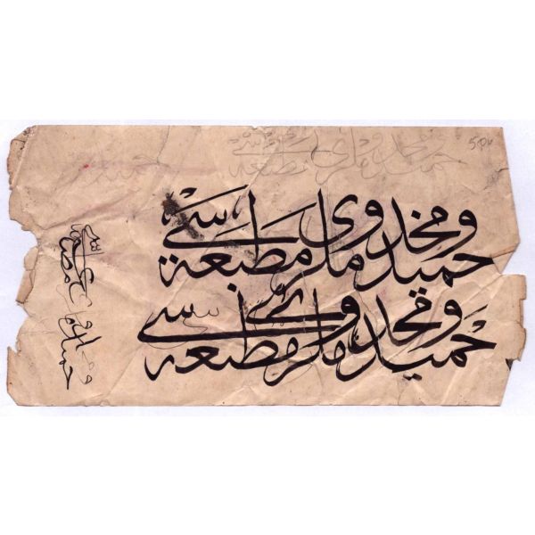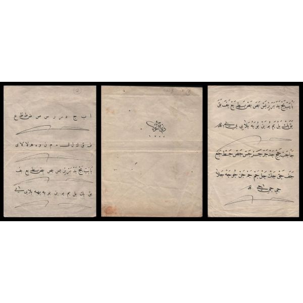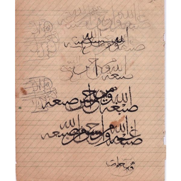 Halim Özyazıcı´nın hocası Hamid Aytac´a gösterdiği meşk. metin içinde Mustafa Halim, Azmi (Hamid Aytaç) ve Mustafa İzzet ketebeleri meşkedilmiş. arka tarafı celi sülüs karalama.