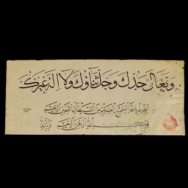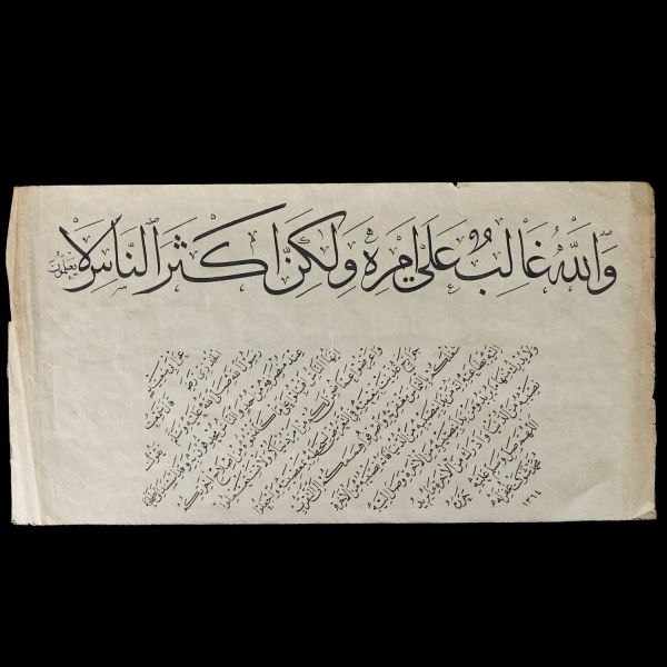 Sülüs kısım: "Allah, emrini yerine getirmeye kadirdir. Fakat insanların çoğu bunu bilmezler." mealindeki Yusuf Suresi 21. ayet yazılıdır.