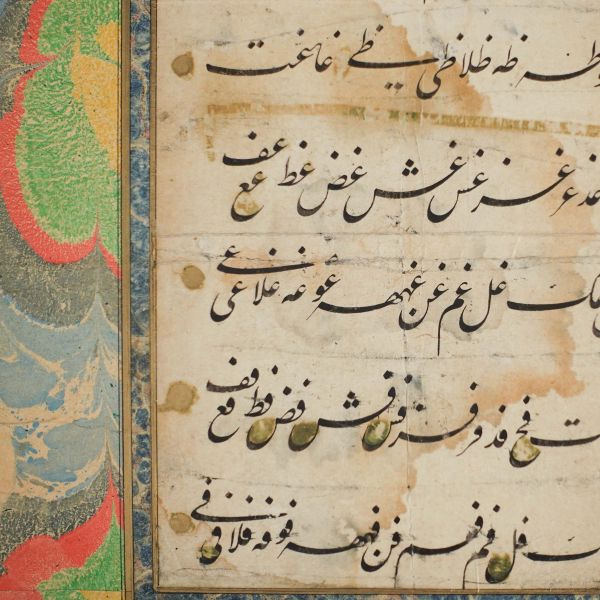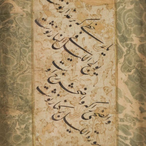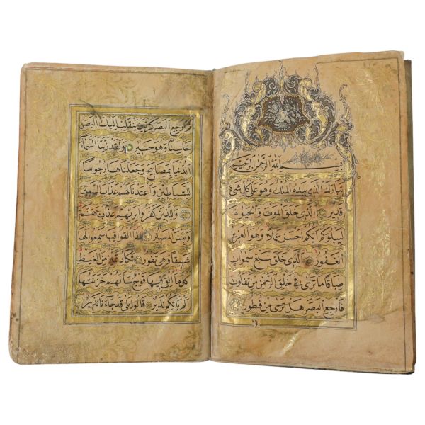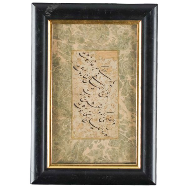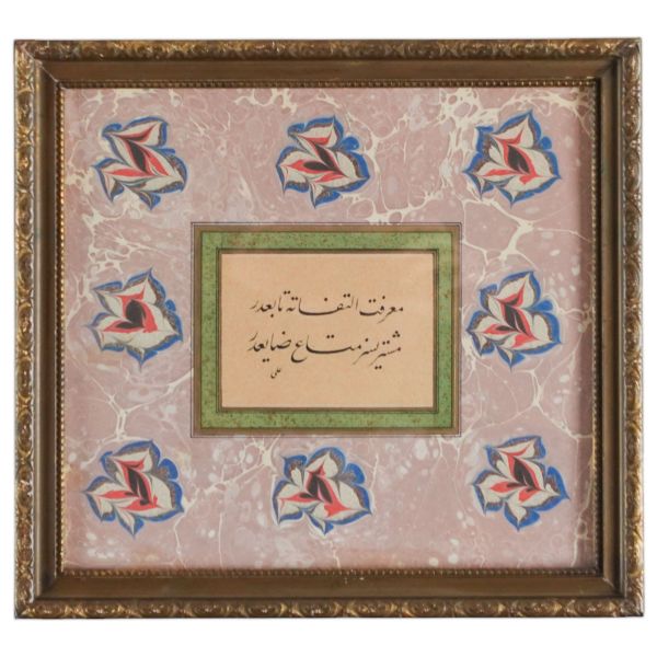 Eser; altın cetvelli, pervazı eski dönem ebruludur.