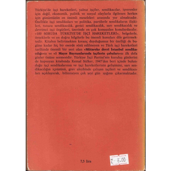 Sendikacılığının yanı sıra, yakından tanıdığı Nazım Hikmet’in yaşamı ve mücadelesi üzerine yaptığı çalışmalarla da tanınan Kemal Sülker’in (1919 – 1995), Türkiye işçi sınıfı tarihi üzerine hazırladığı el kitabı…