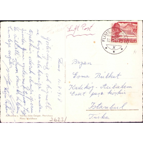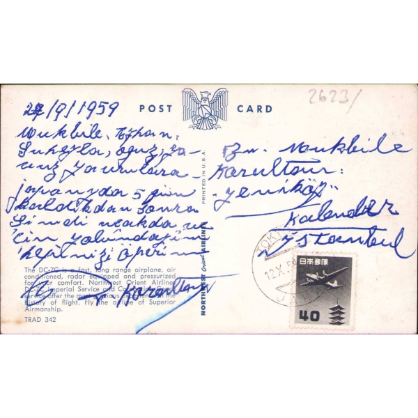 Gönderdiğiniz pulları, bu işle uğraşan Ferid Bey'e verdim. Kitablarınızı İstanbul'da Vecihi Bey'e teslim edebilirmişsiniz. Yalnız Vecihi Bey buna benzer vakalarda: "Henüz bana bir ad gelmedi, alamam" diye itiraz ediyormuş. Ama tabii size itiraz etmez. Sabahaddin Eyüboğlu'nun konuşması bu sayıya girmeyecek diye onlar da işi yavaş tutdular. Maamafih kendilerine söylerim. Benim yazılar ... tamam geldi mi? Eğer fazla geldiyse ? hakkındaki fıkrayı çıkarın. Ötekiler daha iyidir.